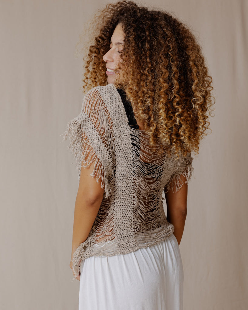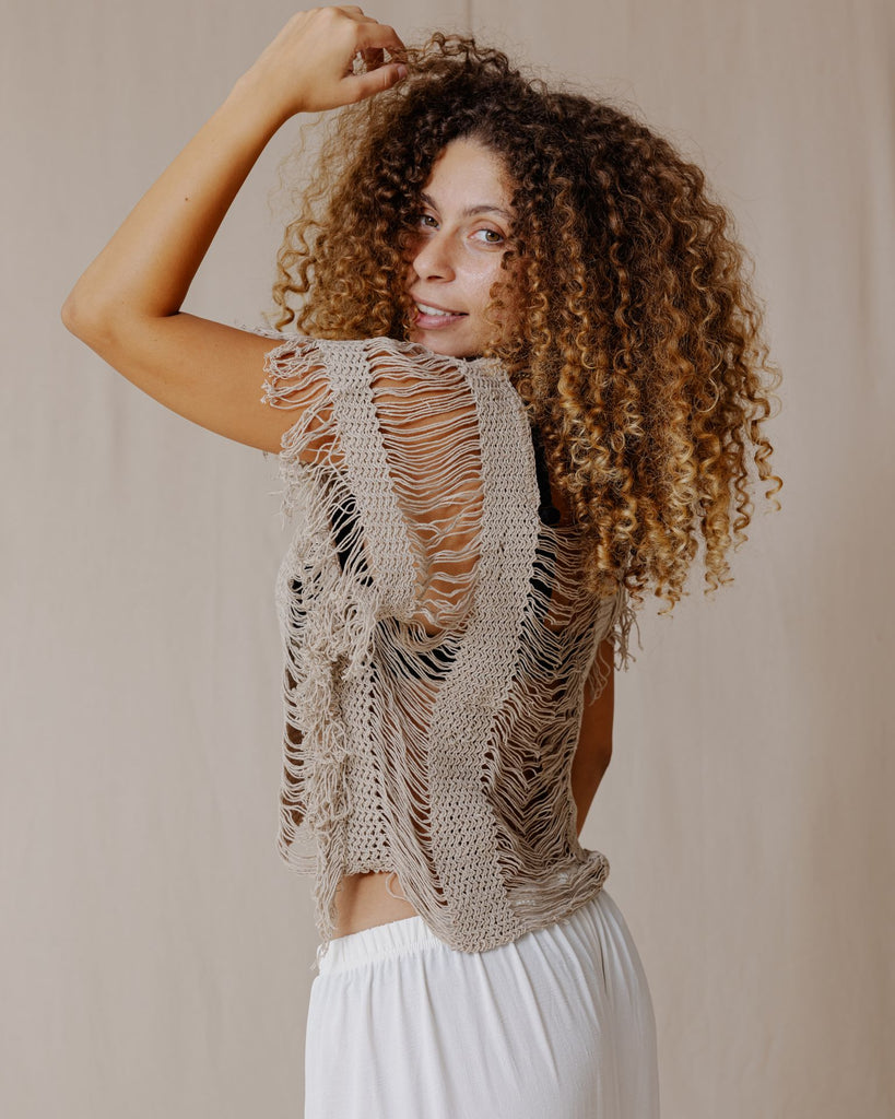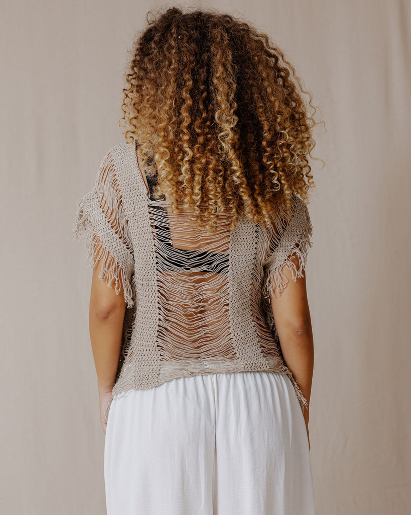 Our Cutout Top is the ultimate summer essential. Featuring cutout details, it can be worn as a coverup or a casual top. Perfect for beach days or relaxed outings.