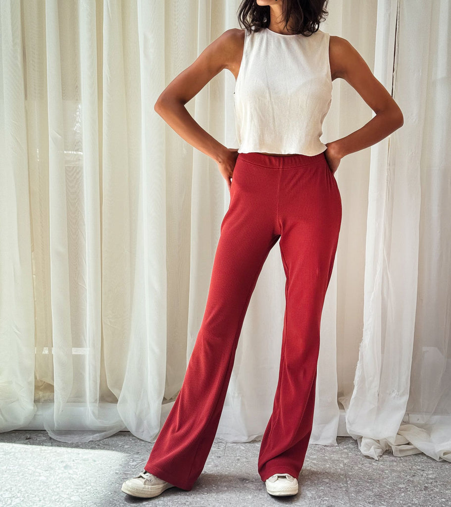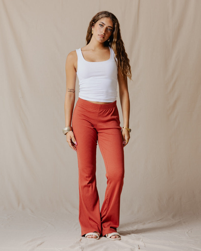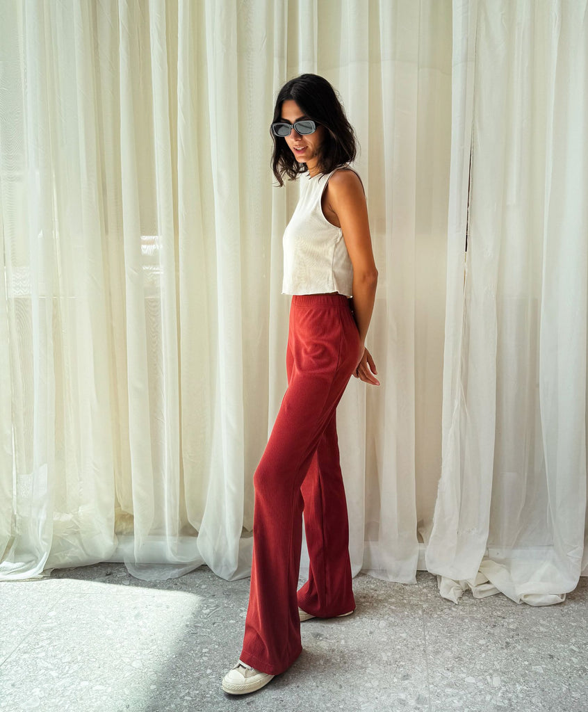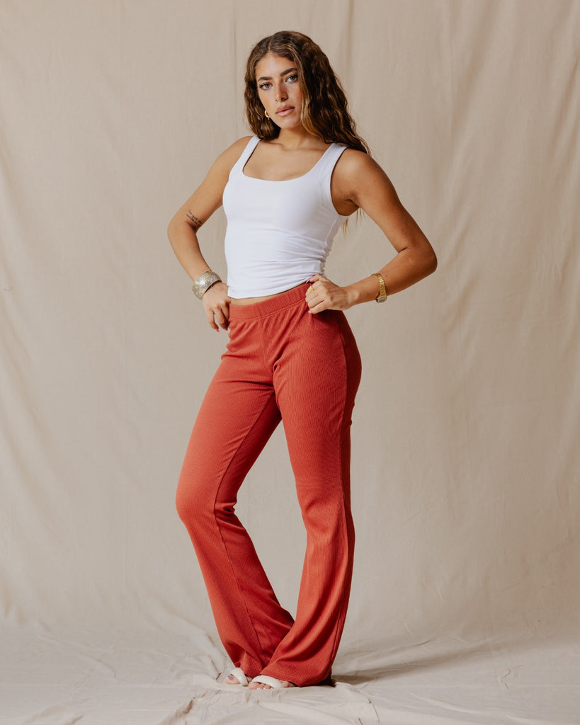 Flare Ribbed Pants Brick