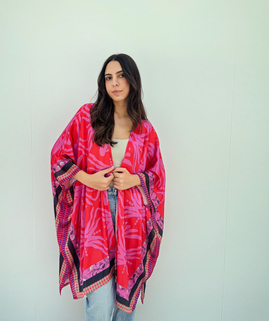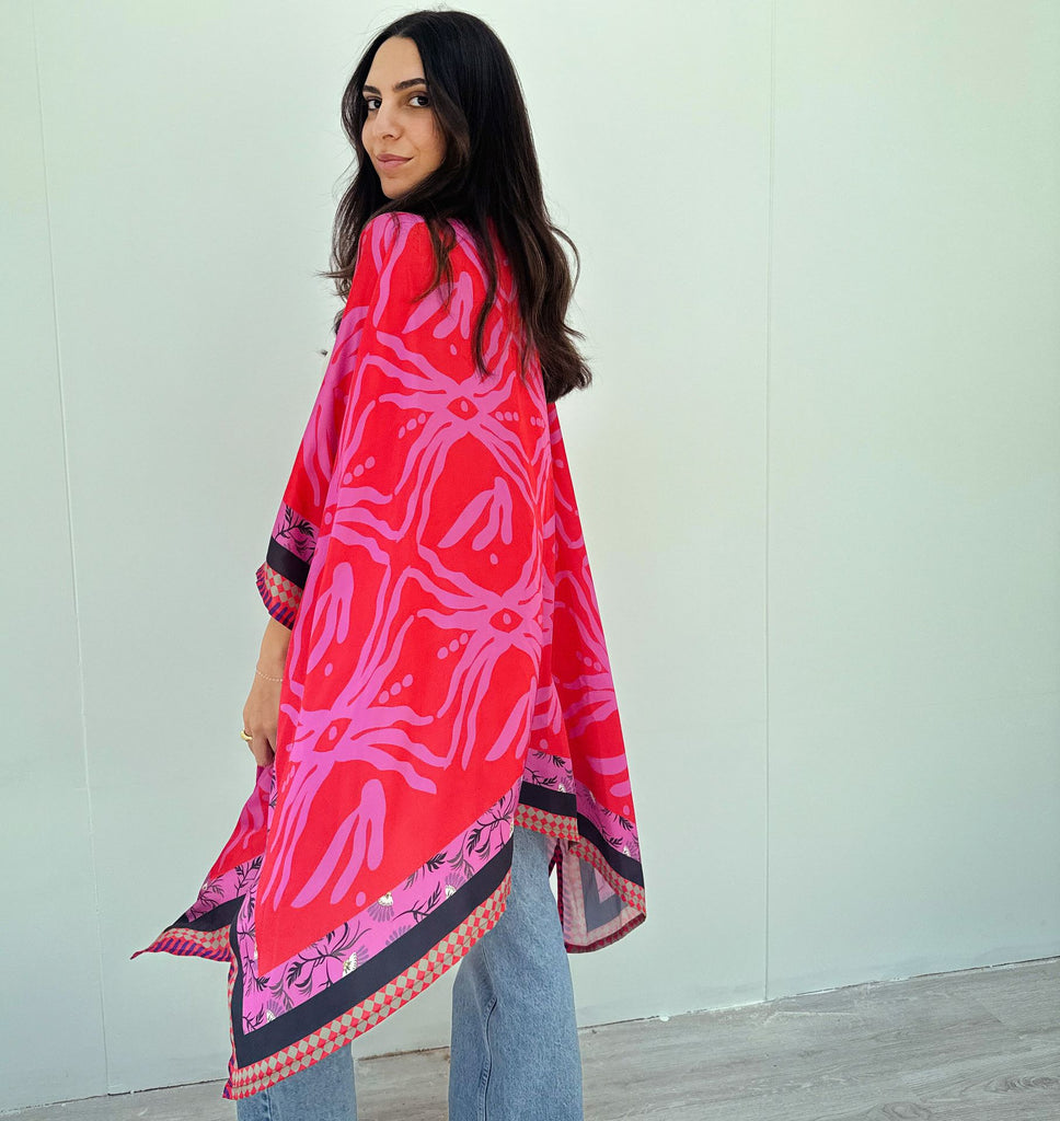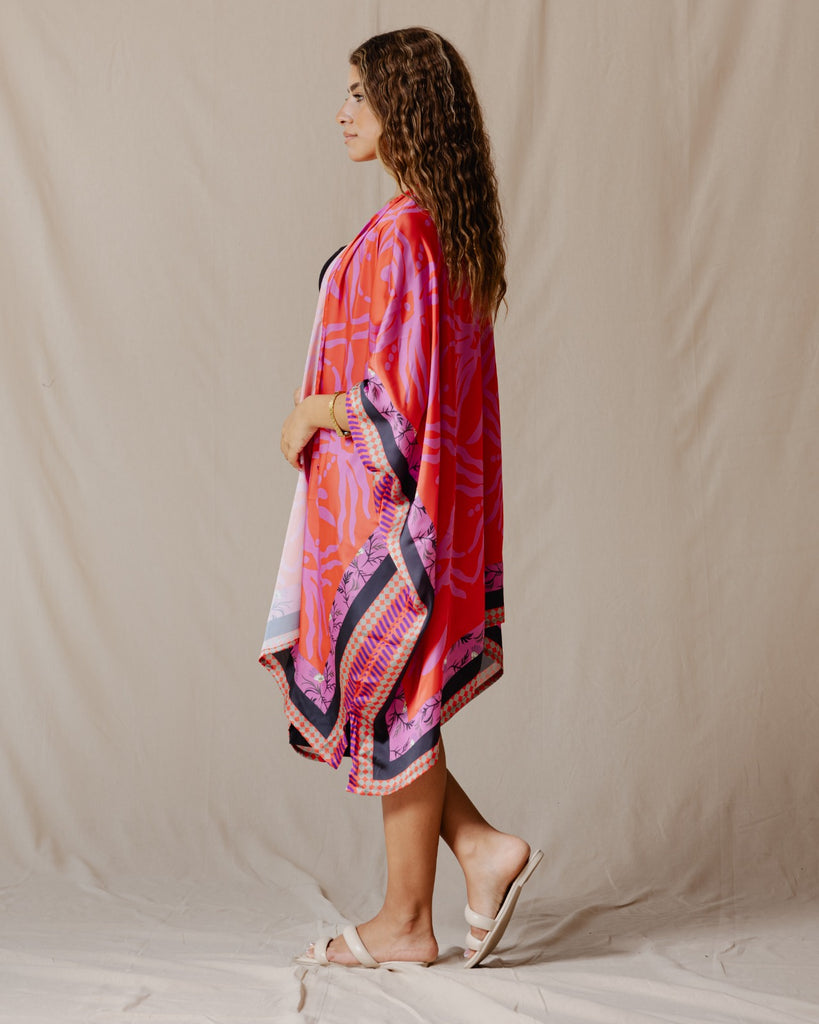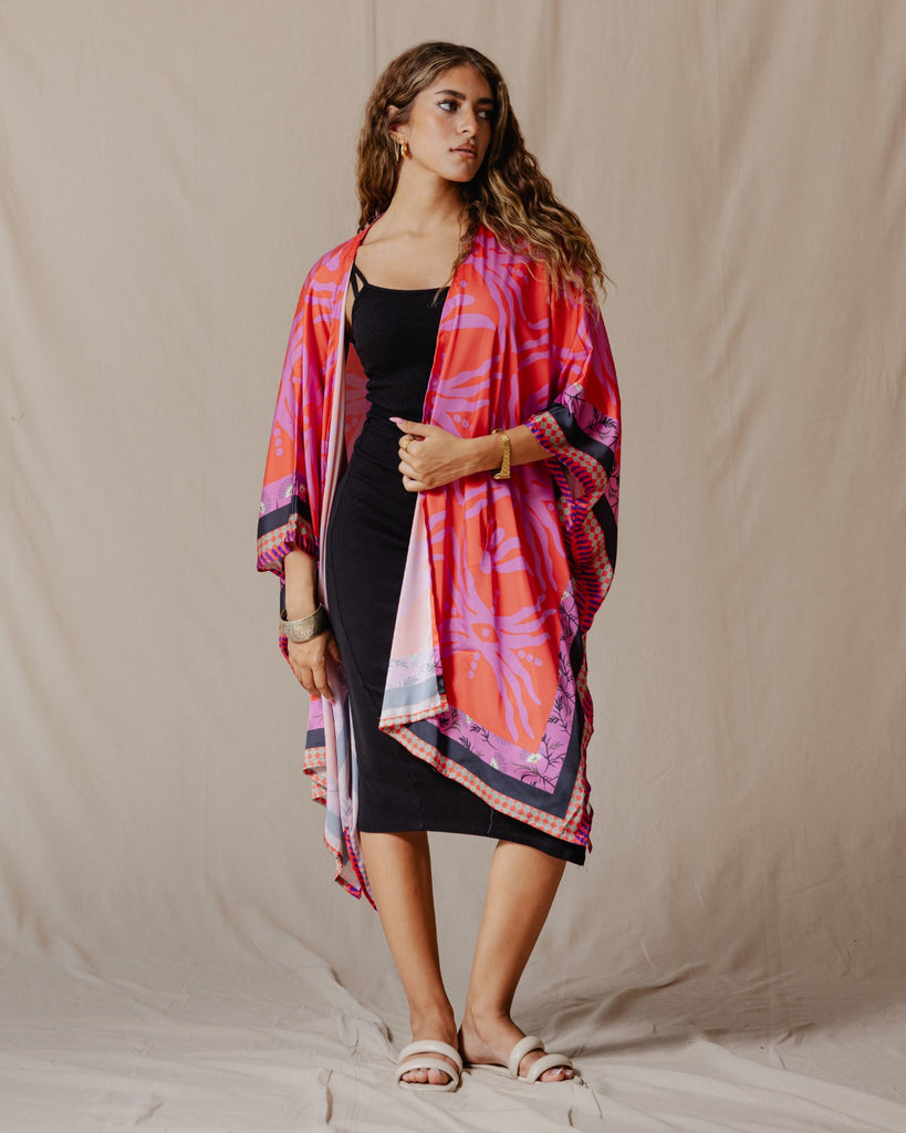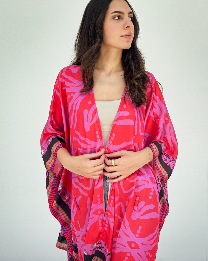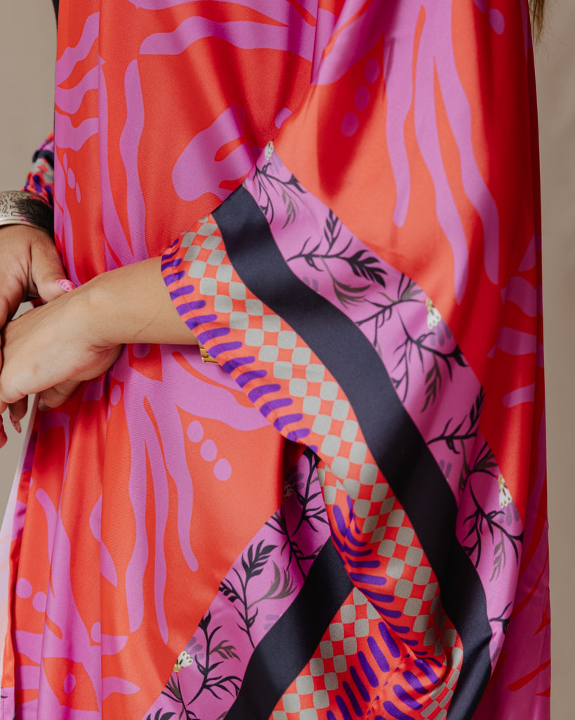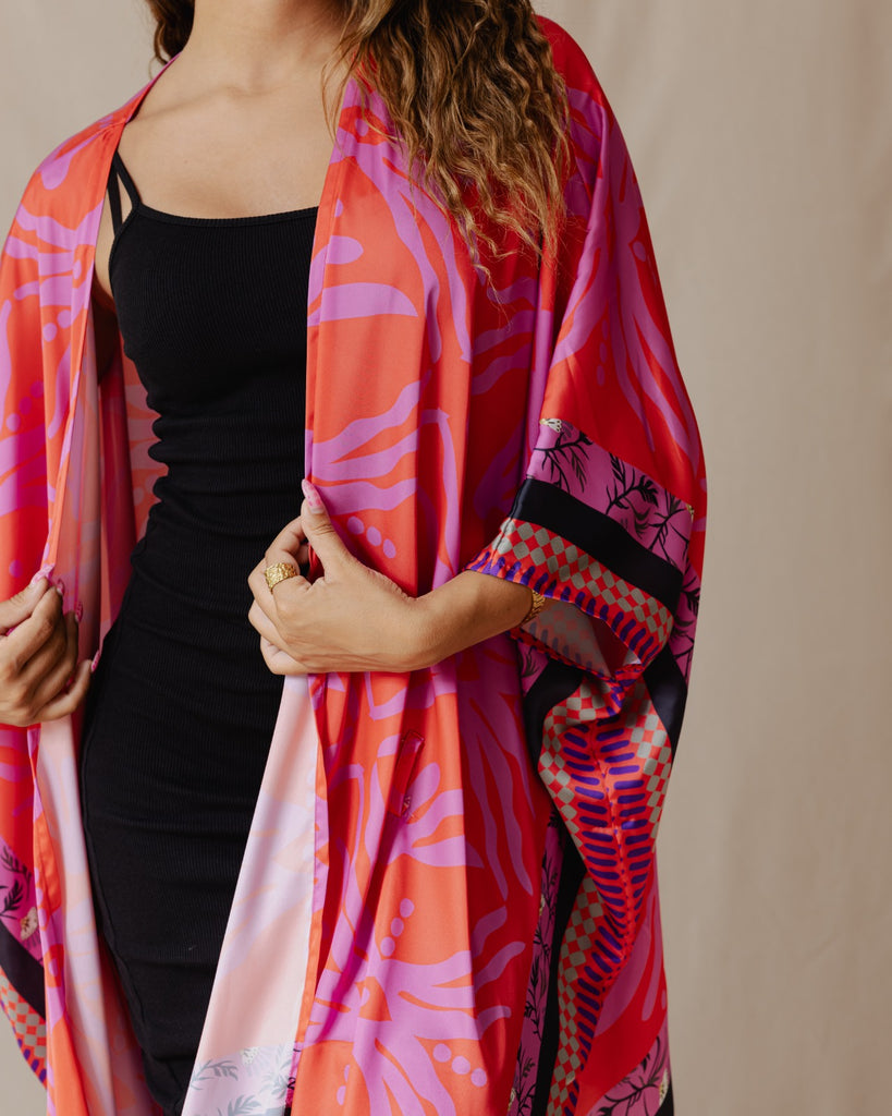 Step into glamour with our satin printed kimono, designed to turn heads wherever you go.