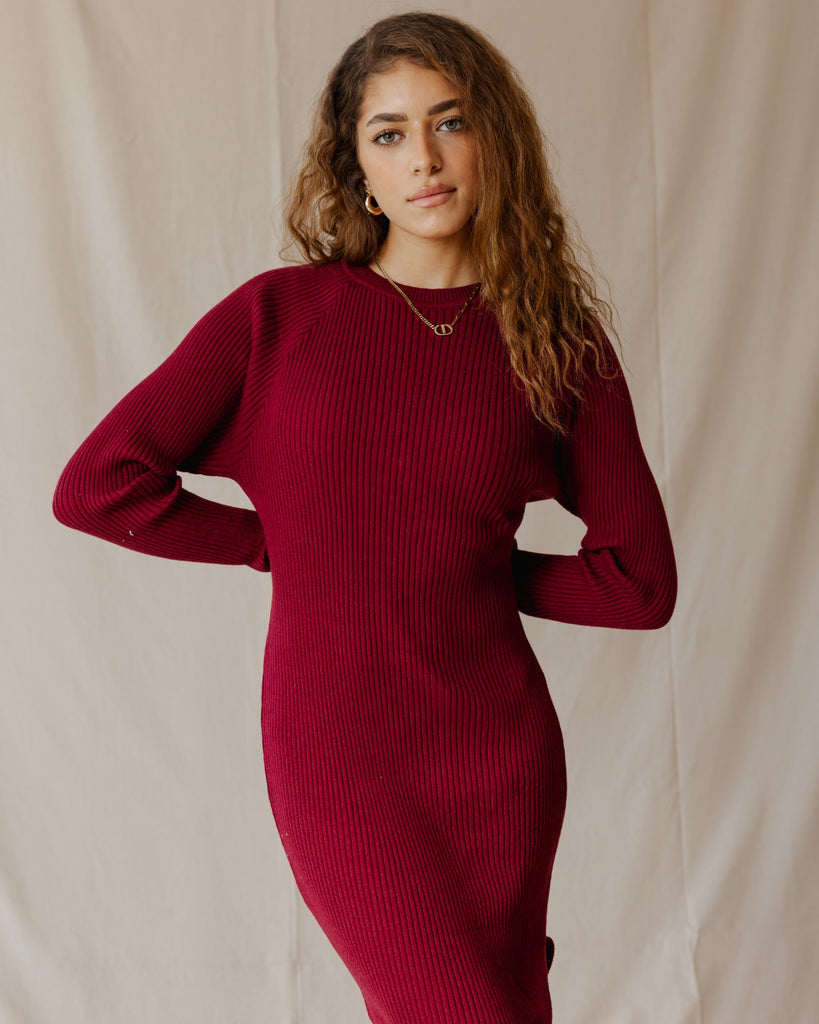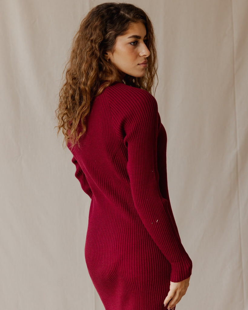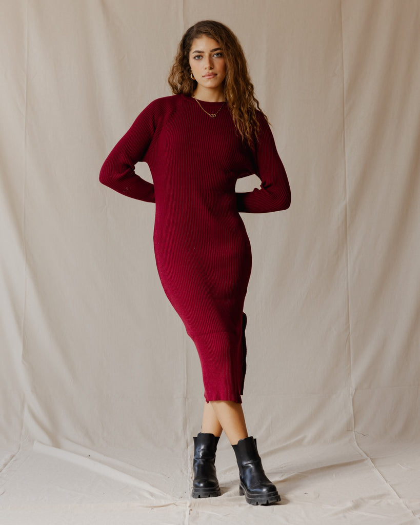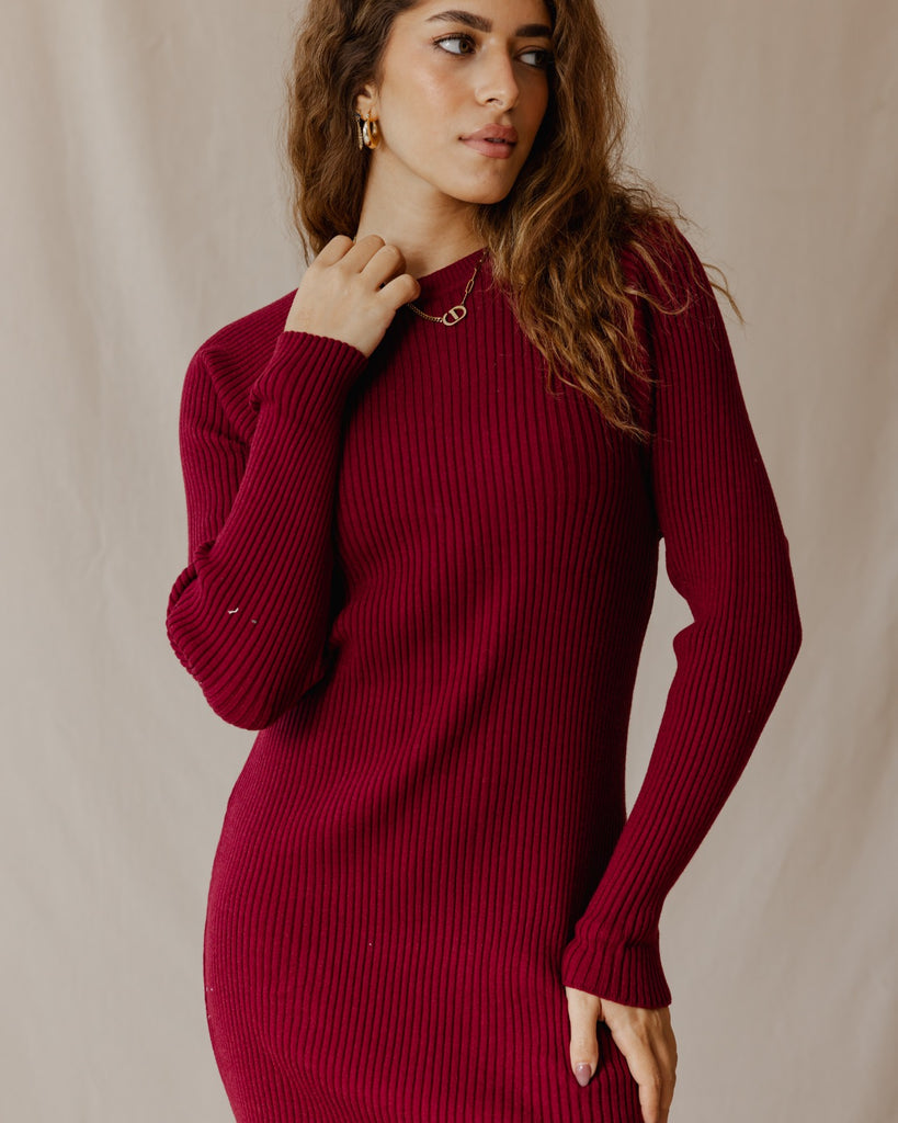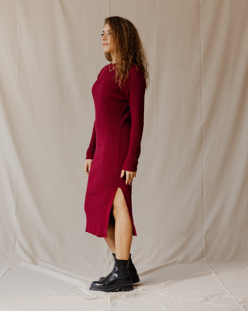 Effortless elegance: Our Daring knitted dress with a flattering side slit delivers comfort and style, Available in 5 colors.