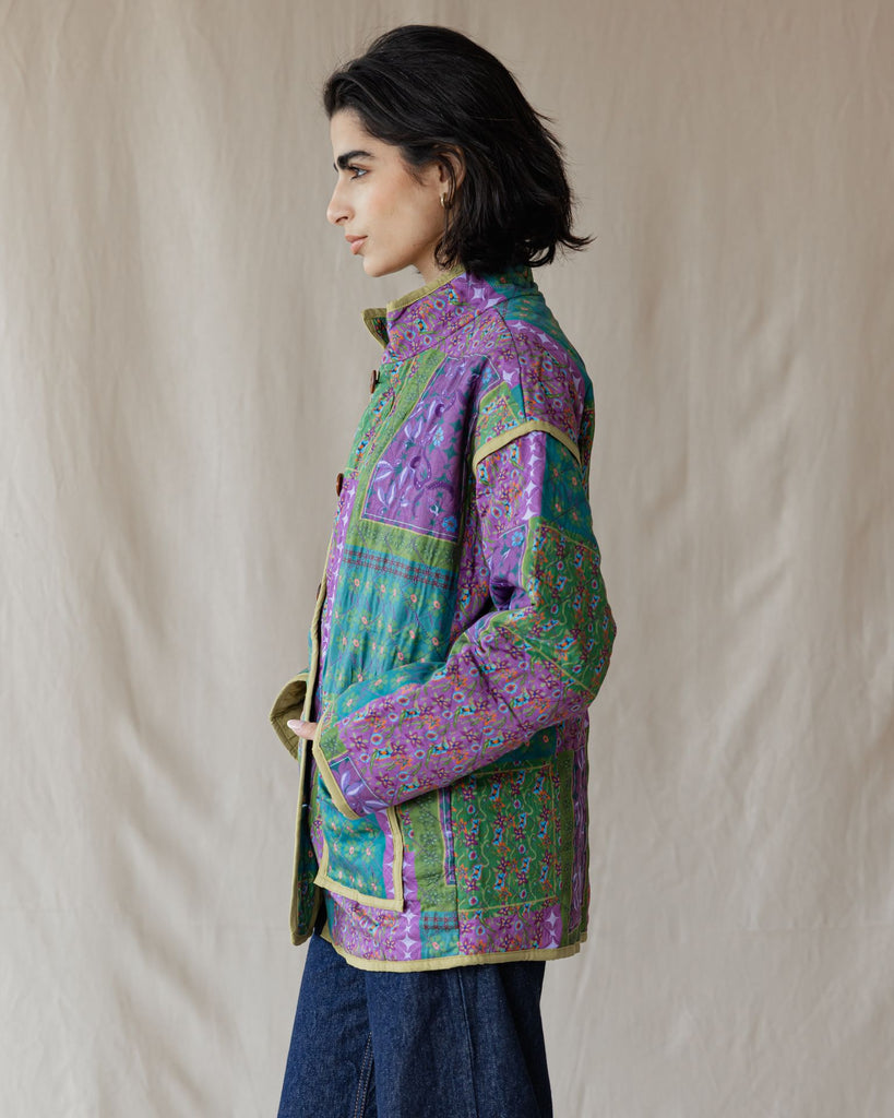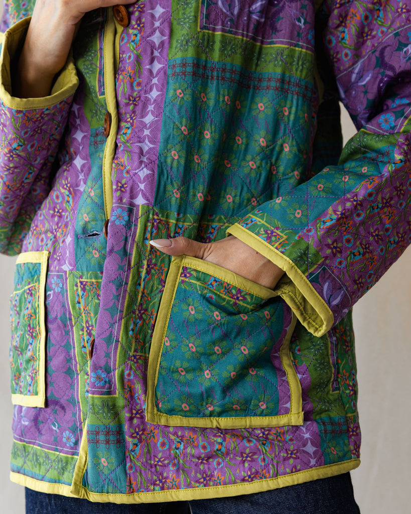Wrap yourself in eco-friendly luxury with our organic oversized quilted jacket. The 100% cotton exterior and 100% viscose lining ensure both comfort and sustainability. The addition of a trendy print and wooden buttons elevates this jacket to a fashionable and conscious choice for any occasion.