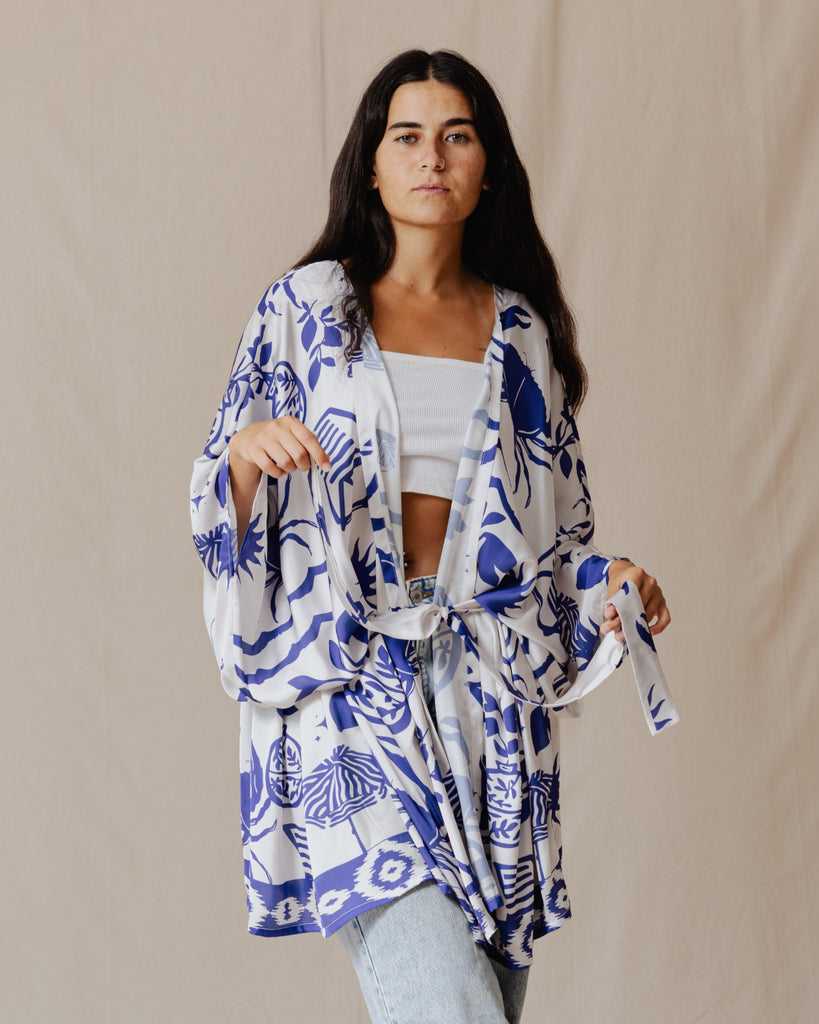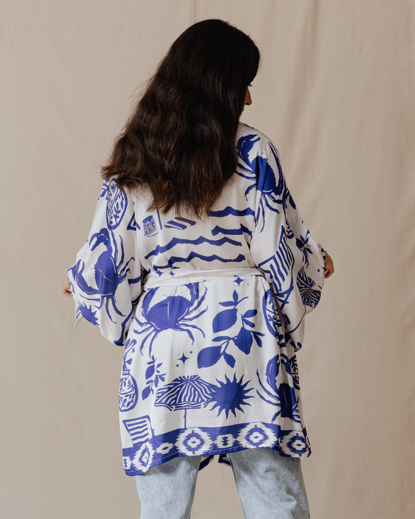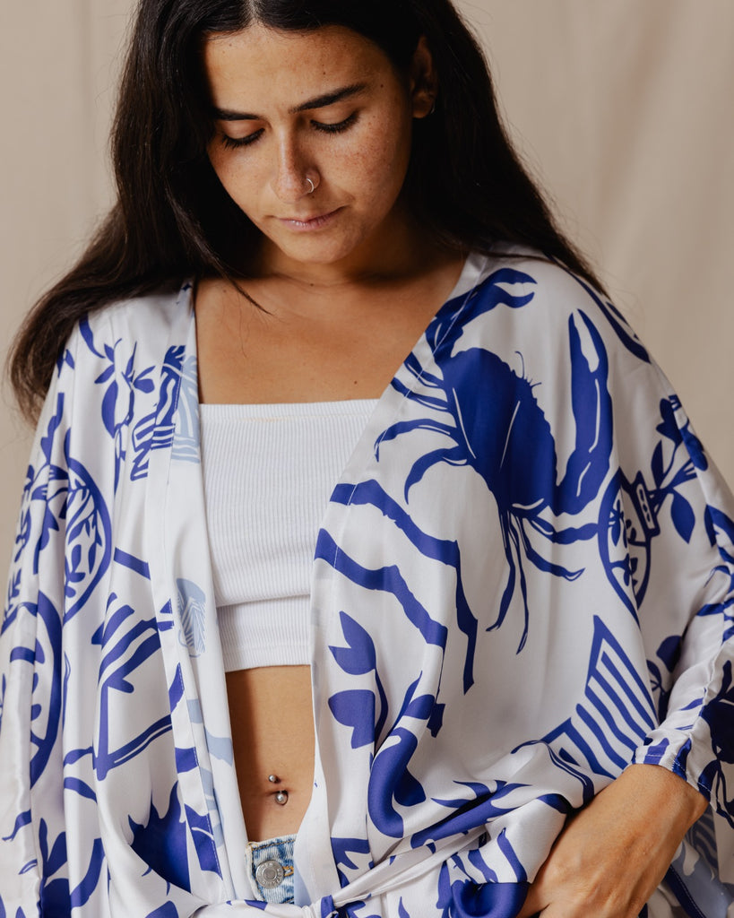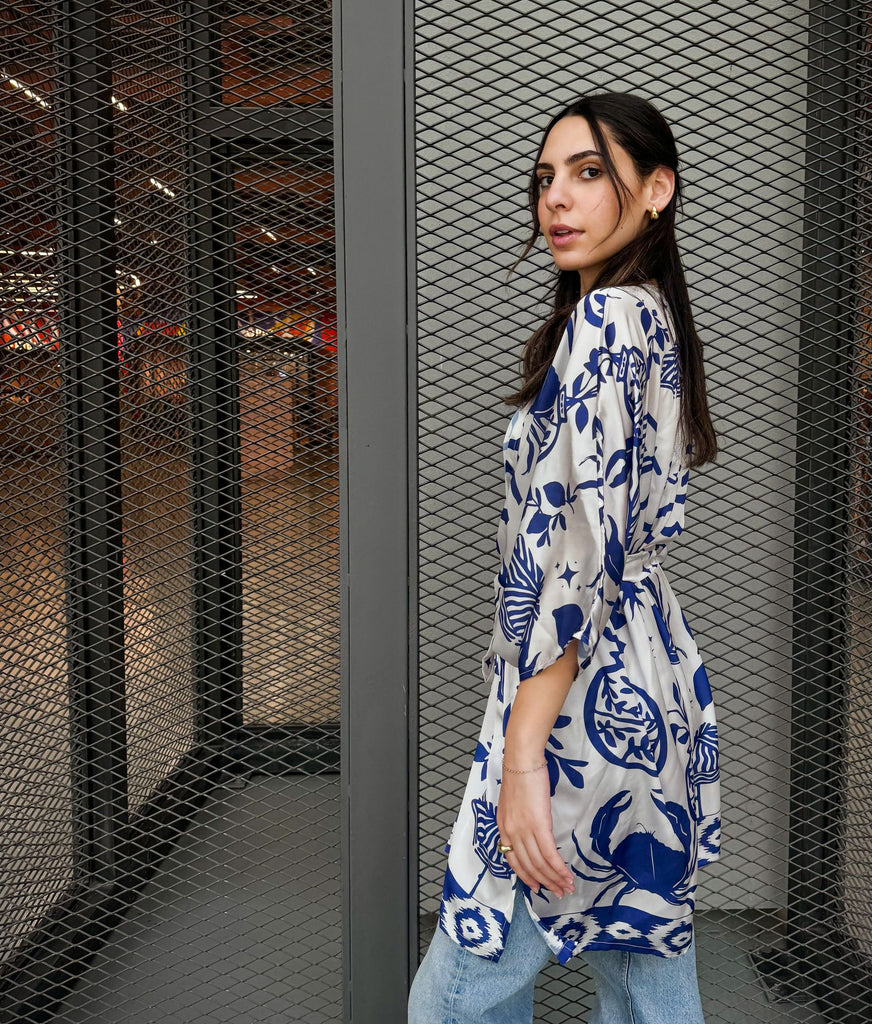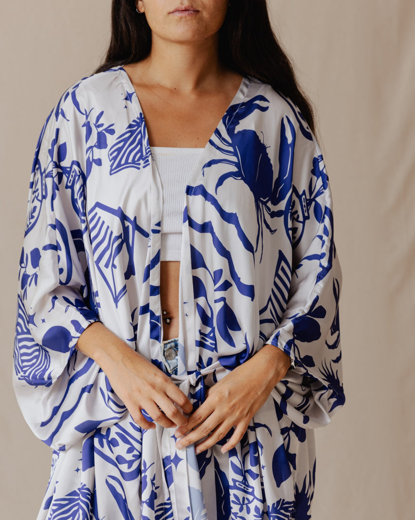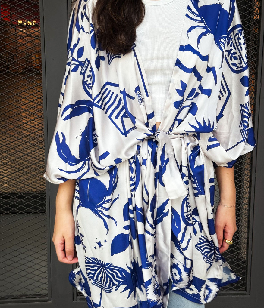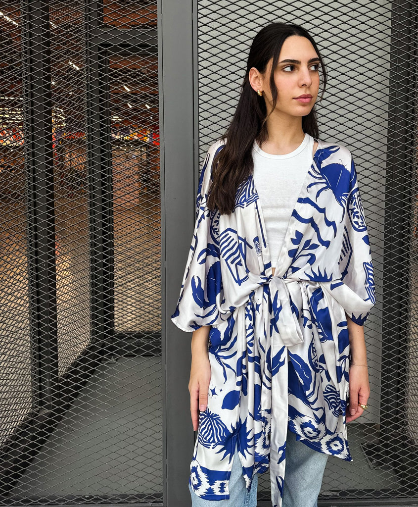 Step into glamour with our satin printed kimono, designed to turn heads wherever you go.