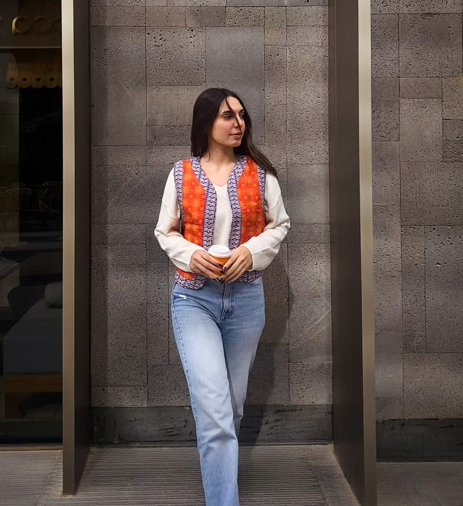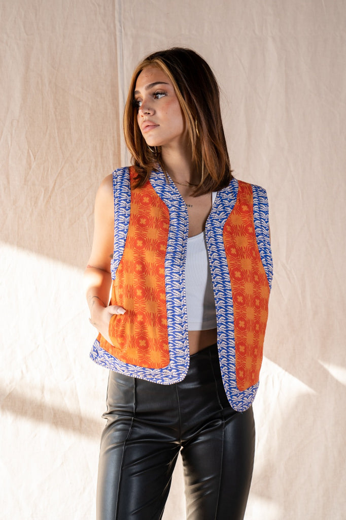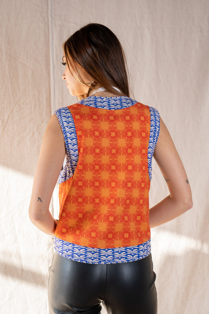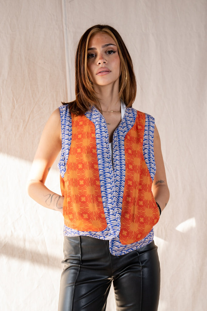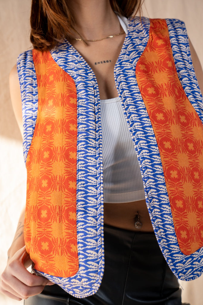 Unleash your creativity with our double-faced printed vest, offering two unique color combinations. This vest allows you to switch up your style and embrace different moods.