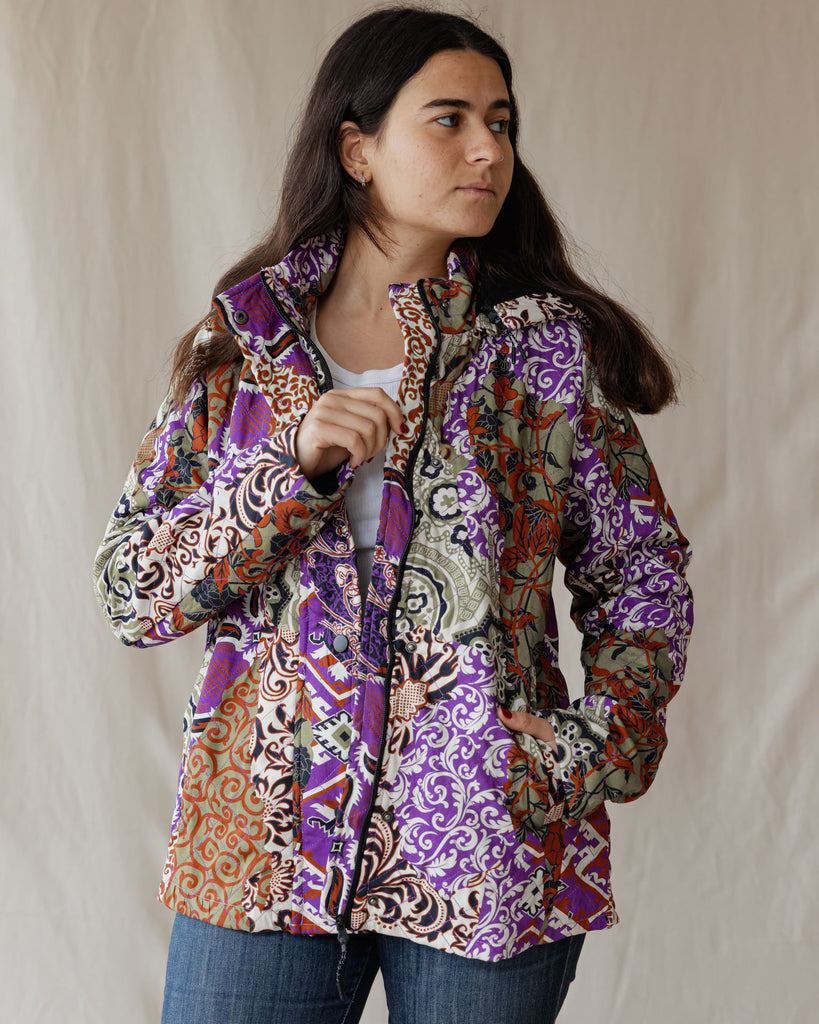 This quilted jacket is waterproof, warm, and adorned with a bold, colorful print. With handy pockets and a versatile design, it’s ready for any adventure.