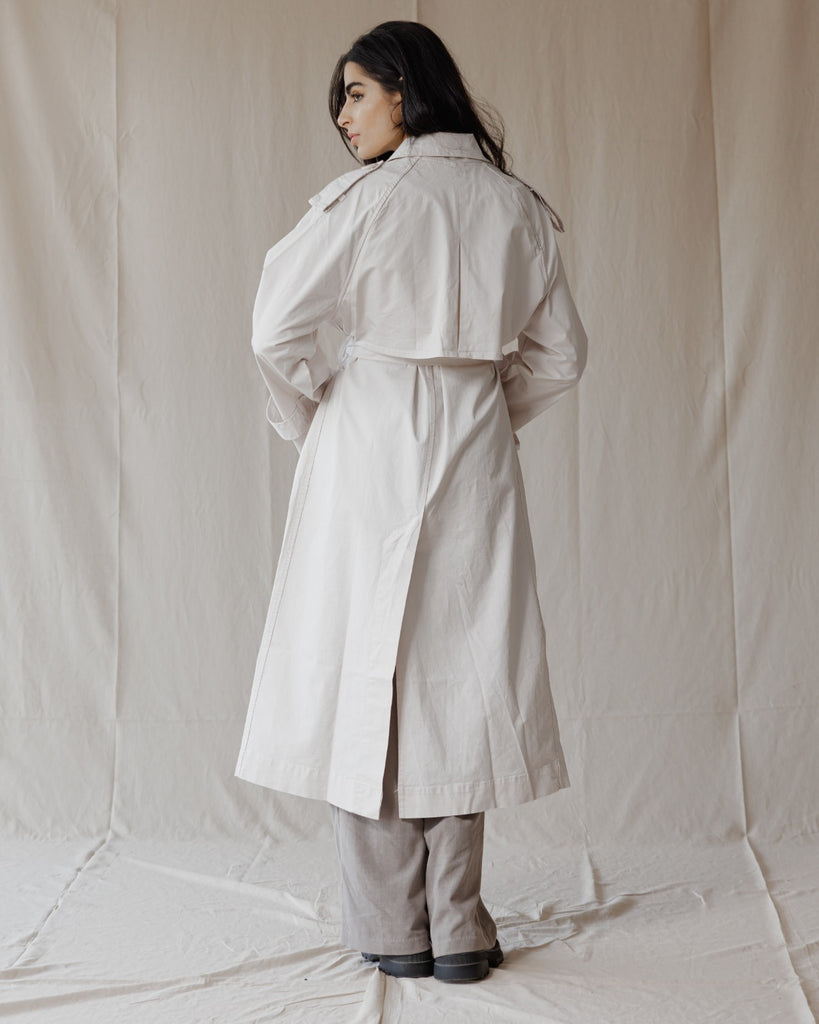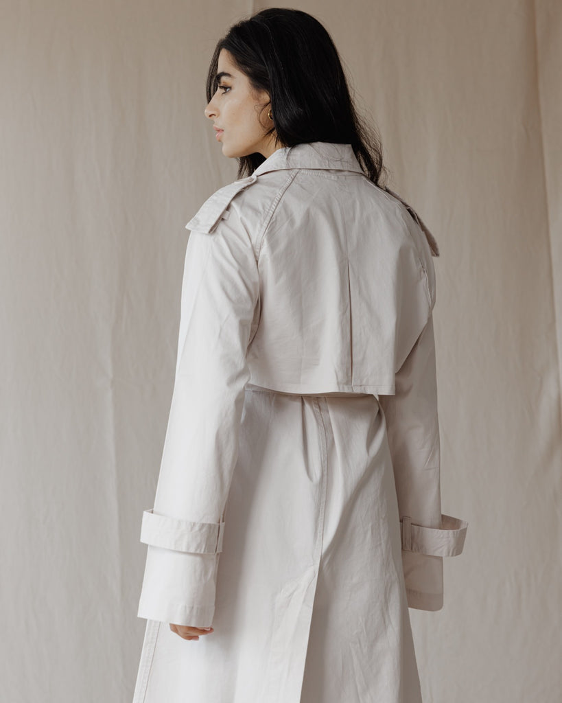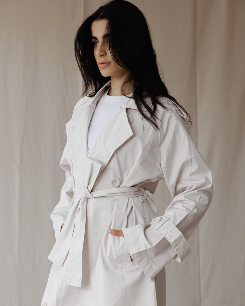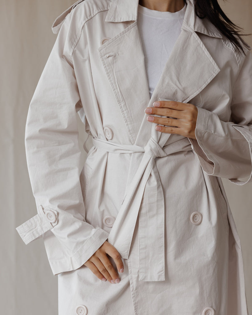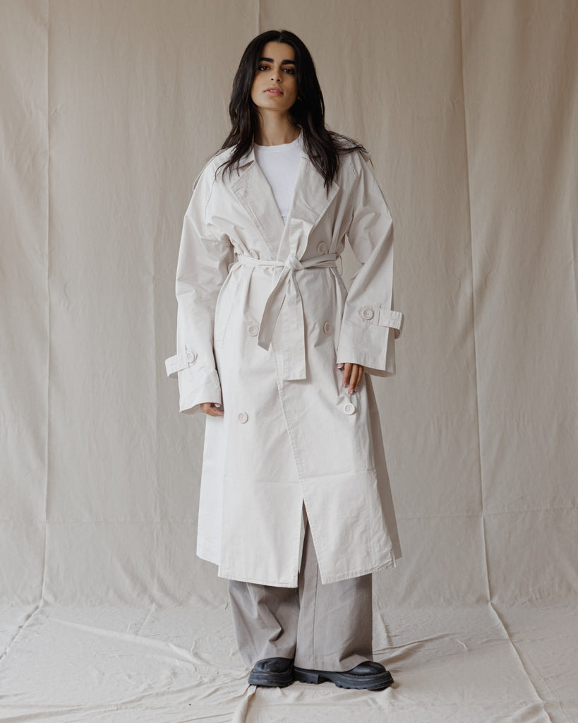 This essential trench coat offers both style and function. With a clean, minimalist design, it features a belted waist, classic collar, and durable fabric for all-weather wear.