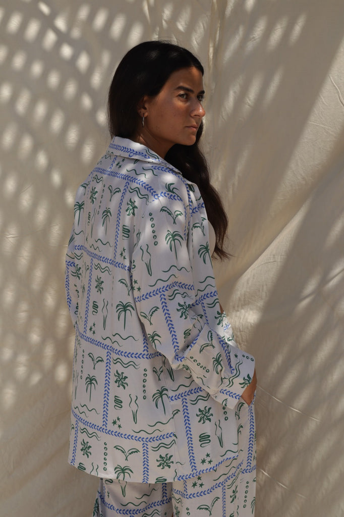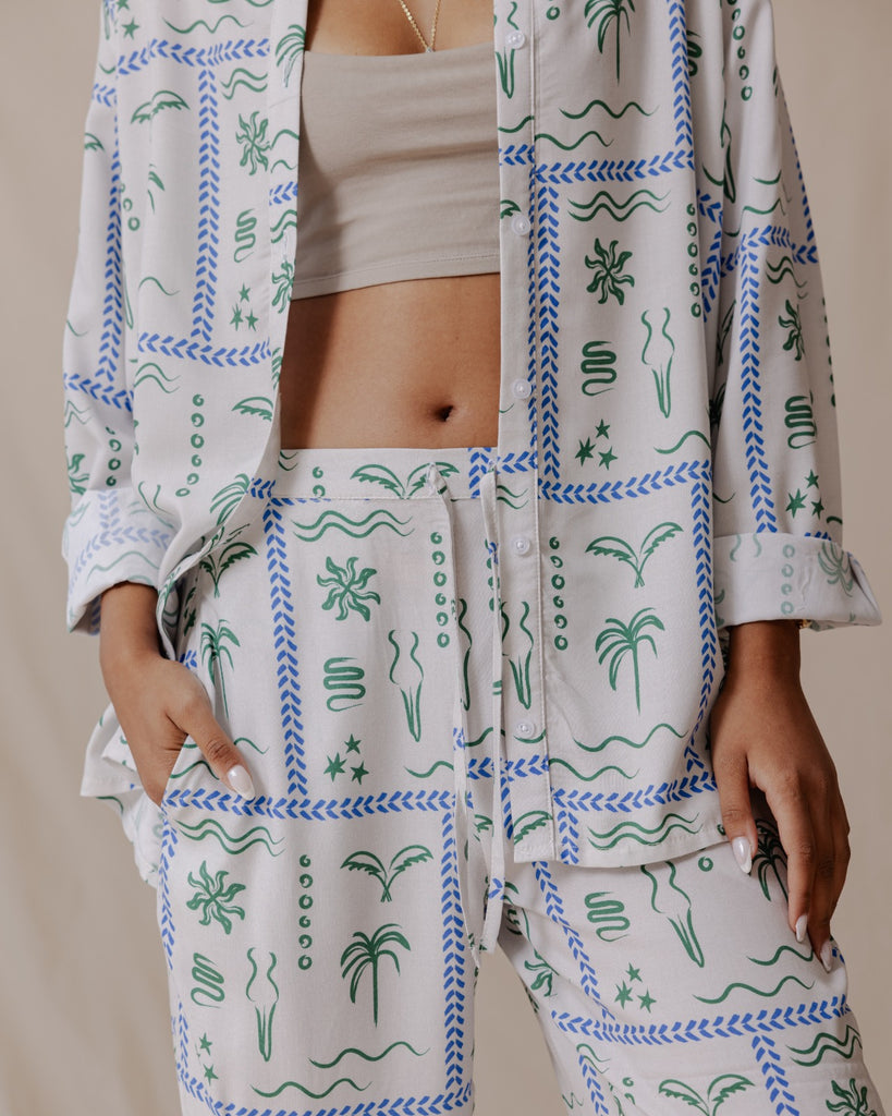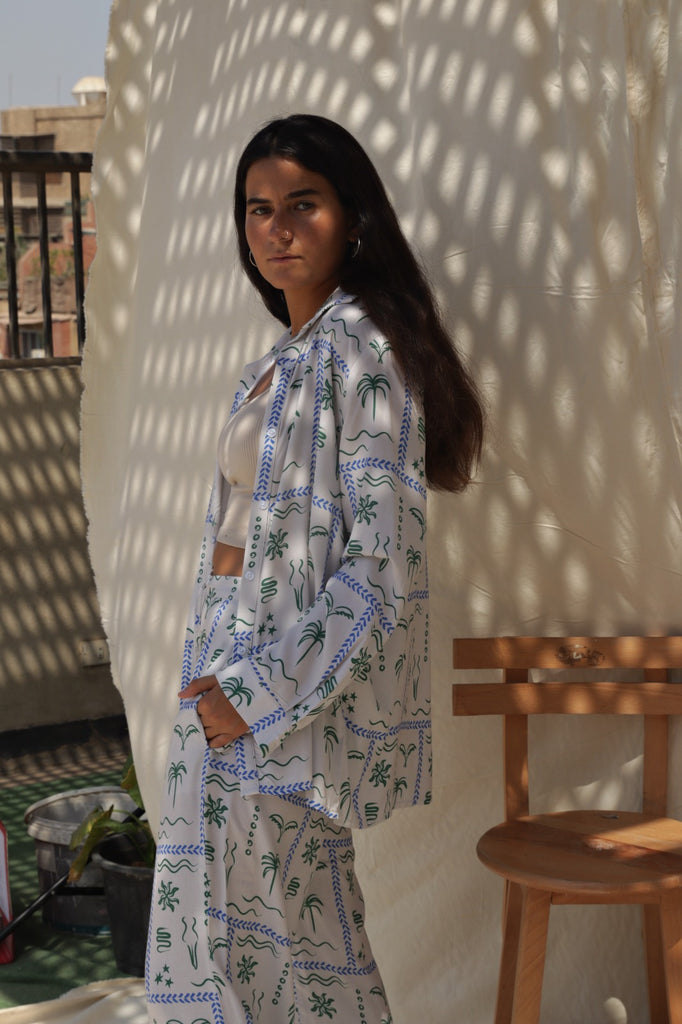 This printed pants and shirt set is a versatile choice for any occasion. Whether you're exploring the city or enjoying a casual walk, it offers the perfect balance of style and ease.