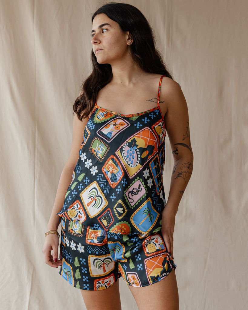 A dreamy satin PJ set designed for ultimate comfort and style. Soft, lightweight, and printed with unique patterns, it’s perfect for lounging or a good night’s sleep..