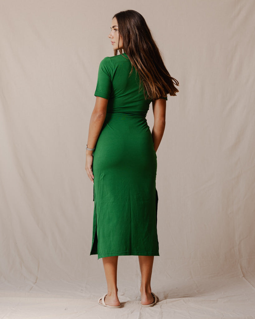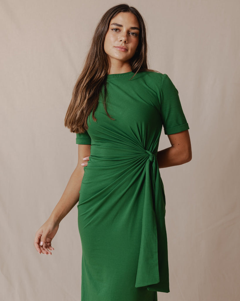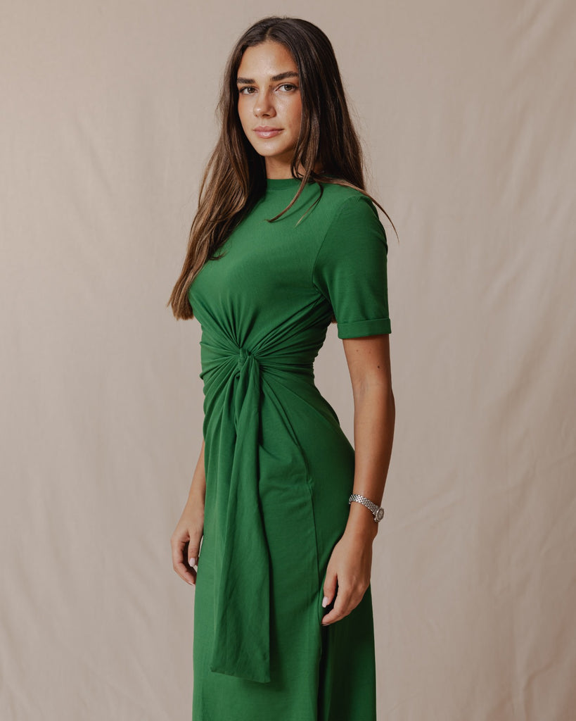 Indulge in the warm weather with this breezy cotton midi dress. Featuring a playful side tie and a chic slit. Perfect for effortless summer style.