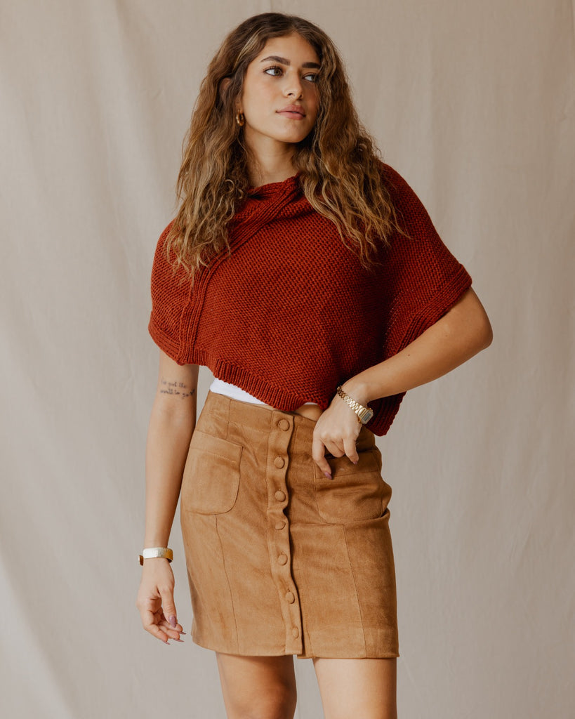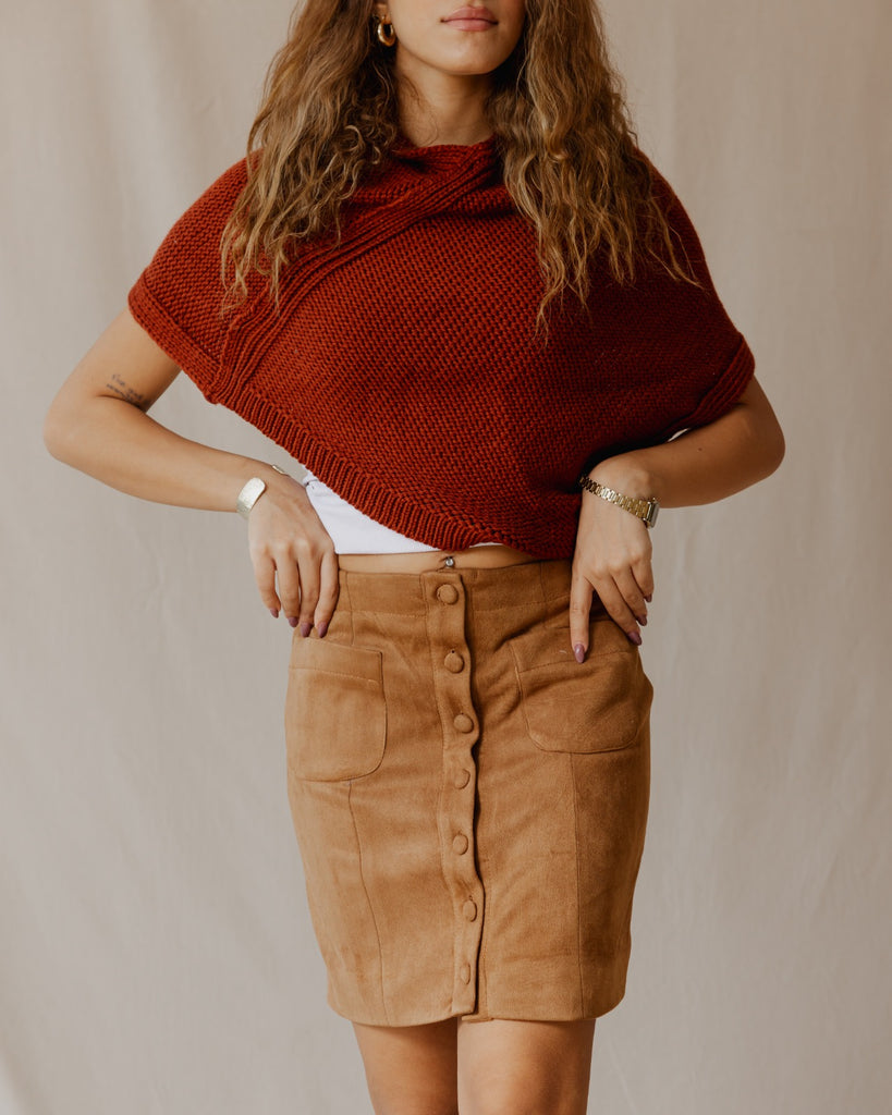 This mini suede skirt features a row of buttons that adds subtle charm. Soft and comfortable, it’s perfect for dressing up or down.