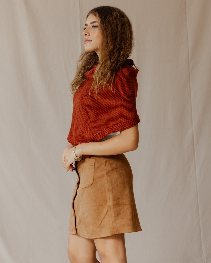 Suede Buttoned Mini Skirt Havane