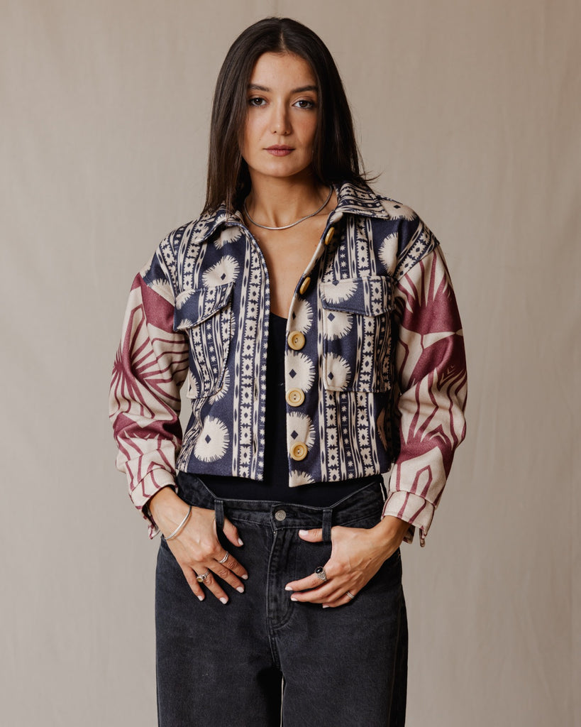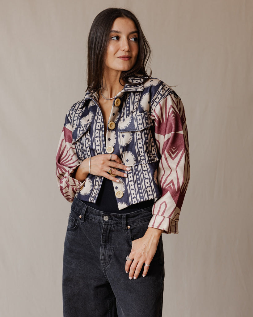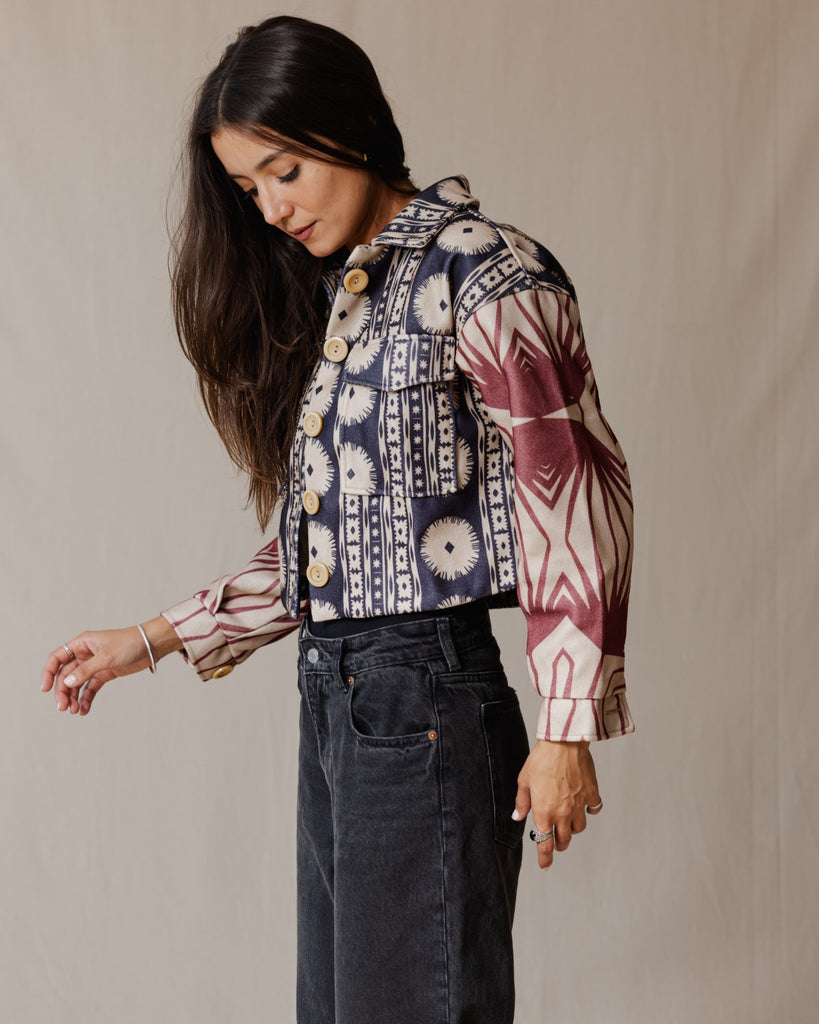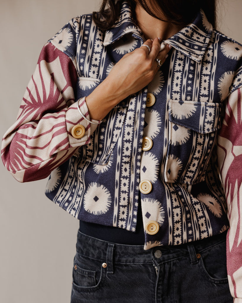 Introducing our Wool baize Jacket, a stylish and cozy outerwear piece. Crafted from wool fabric, it offers warmth and comfort. With its eye-catching print, it adds a touch of personality to any outfit. Stay fashionable and cozy with this Printed Jacket.