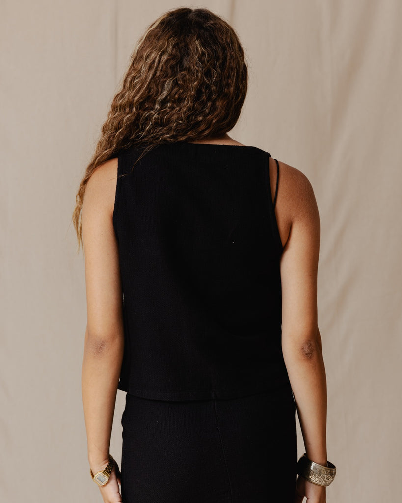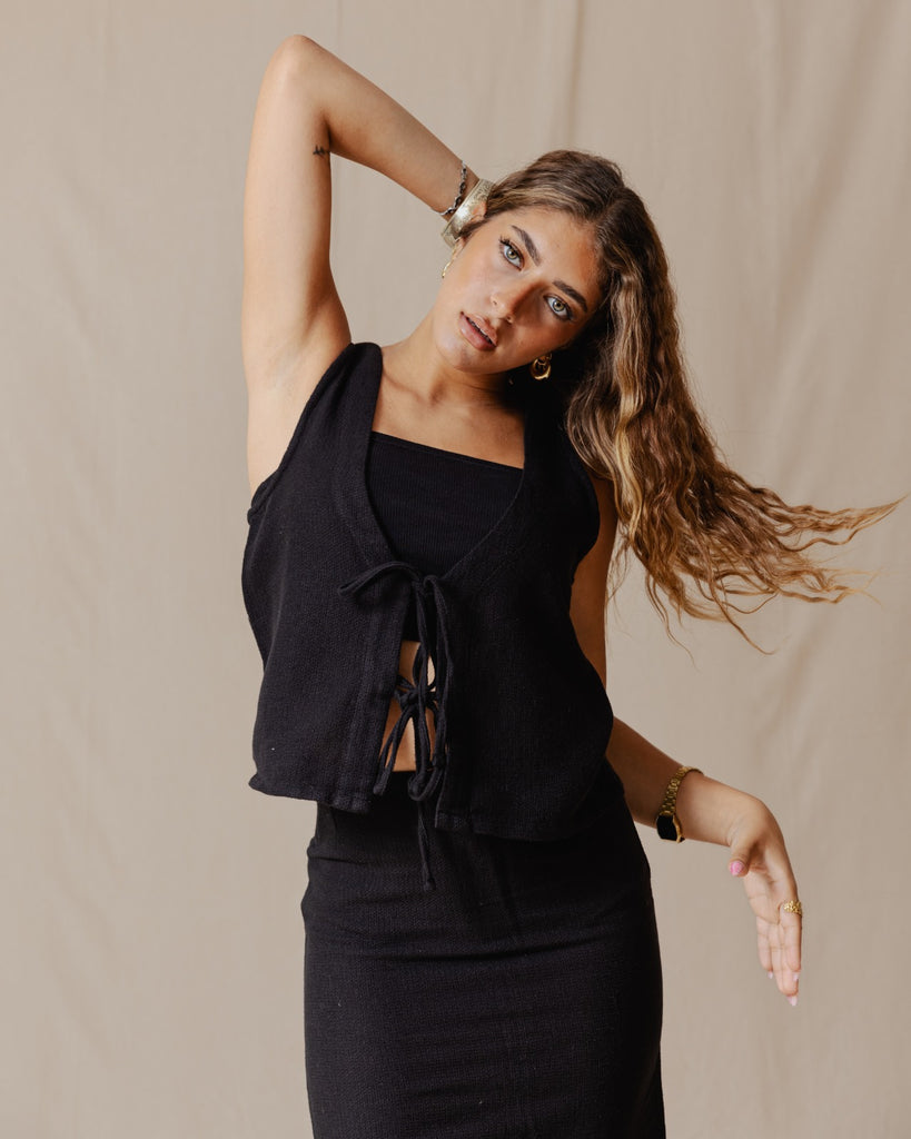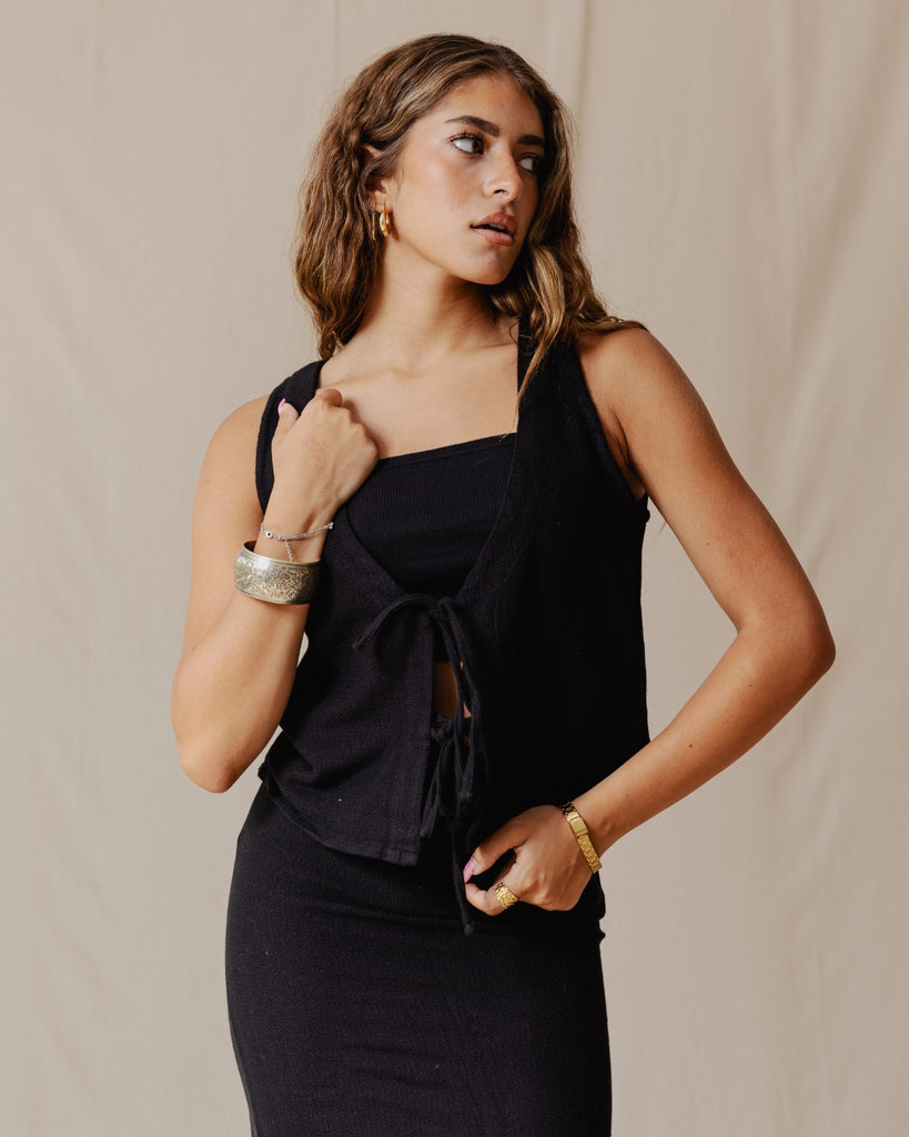 Tie Front Knitted Vest Black