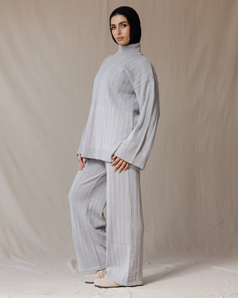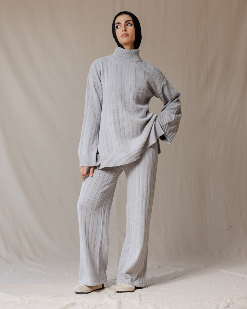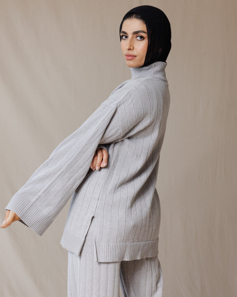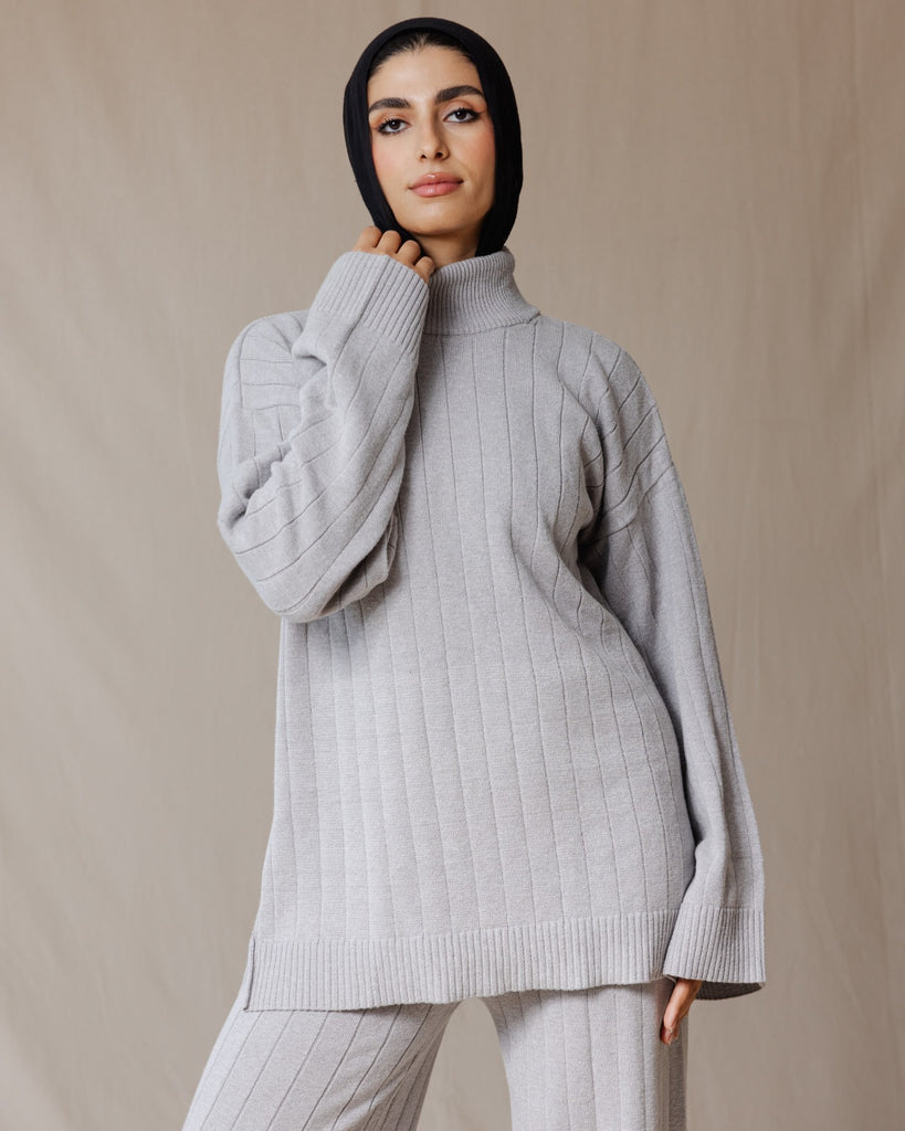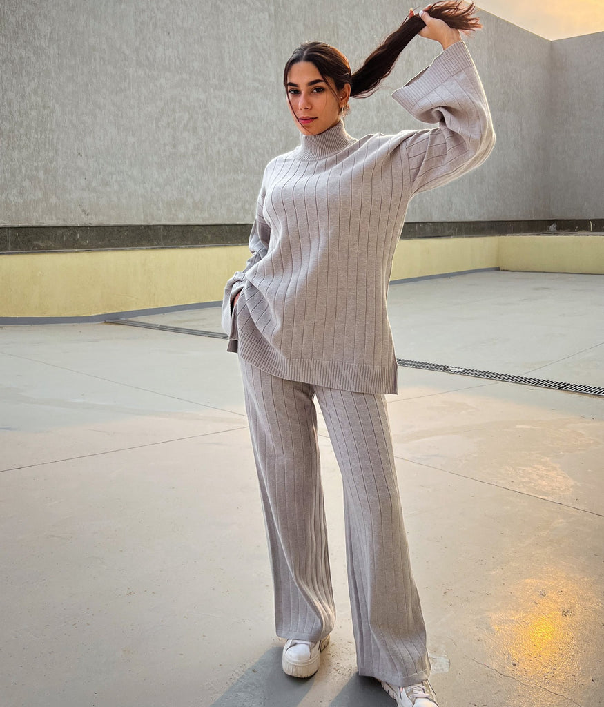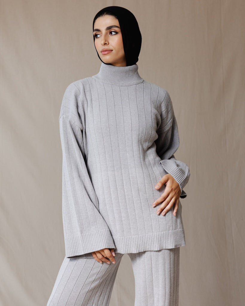Elevate your winter wardrobe with our Knitted Set. Embrace the chic combination of a turtleneck style and ribbed knit texture, providing a flattering fit and effortless style all season long. Available in 3 colors.