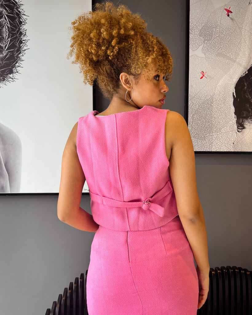Our V-Neck cotton vest, inspired by classic suit vests, offers versatility and style. The button-up front and false welt pockets on the front add a touch of elegance, while the adjustable strap with a buckle on the back ensures comfort and customization. Whether for formal occasions or adding a polished touch to your everyday attire, this refined cotton vest is a stylish choice and a perfect addition to your wardrobe.