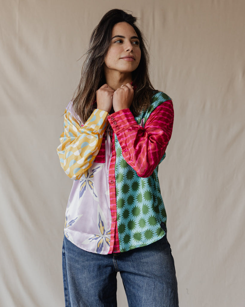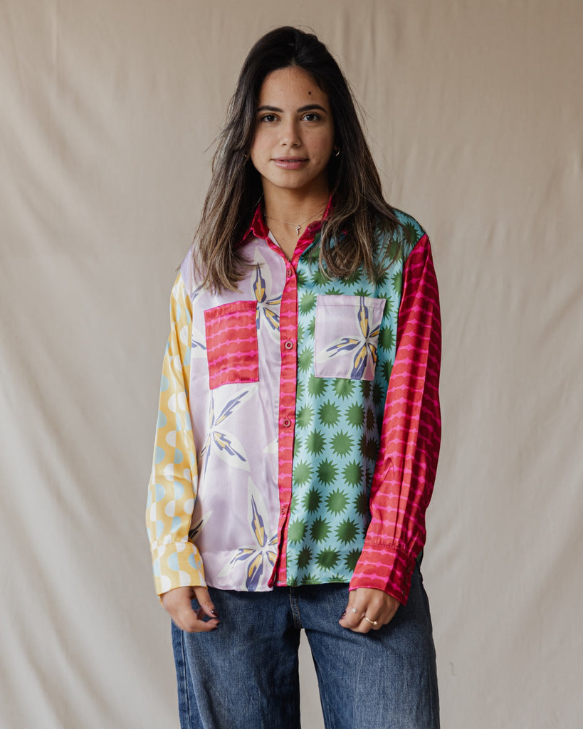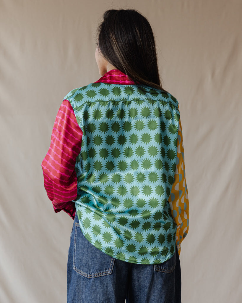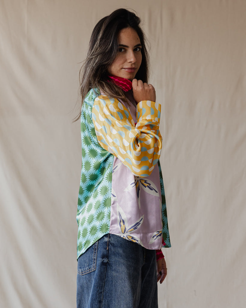 Whimsical Patchwork Satin Shirt