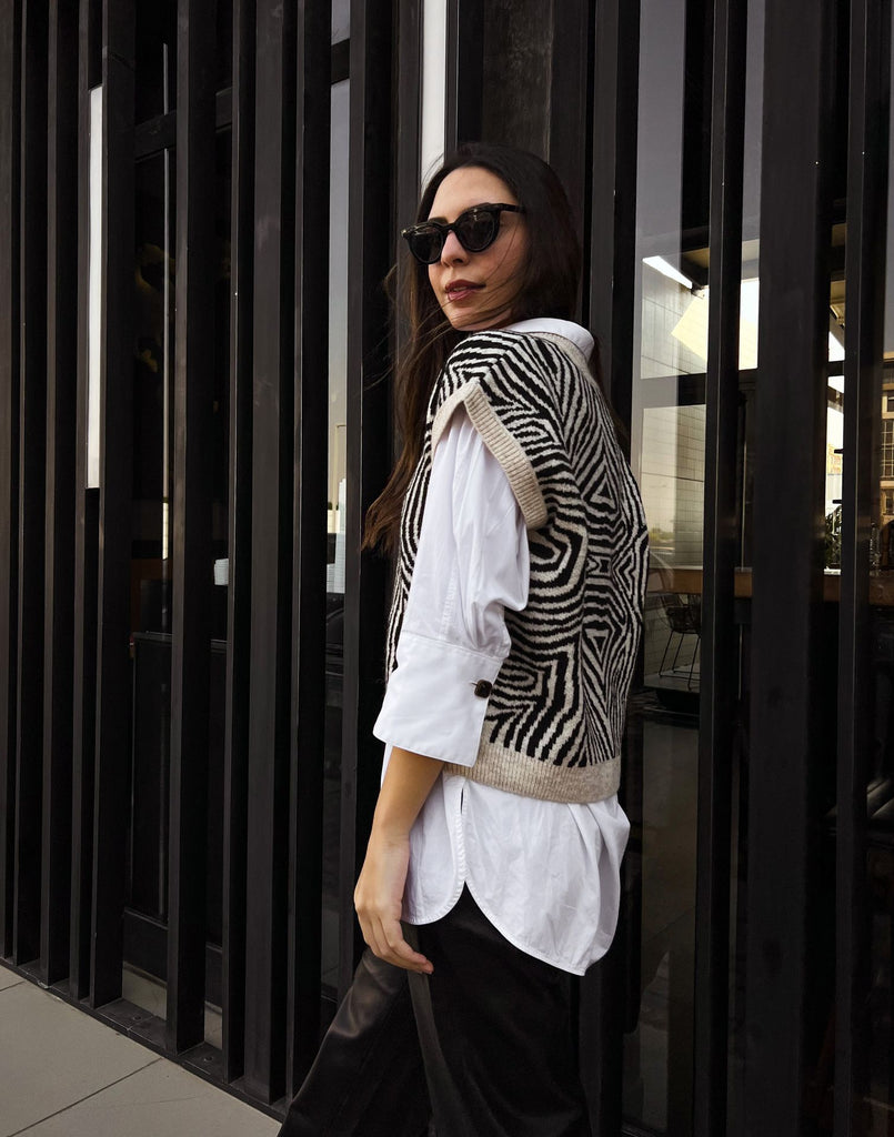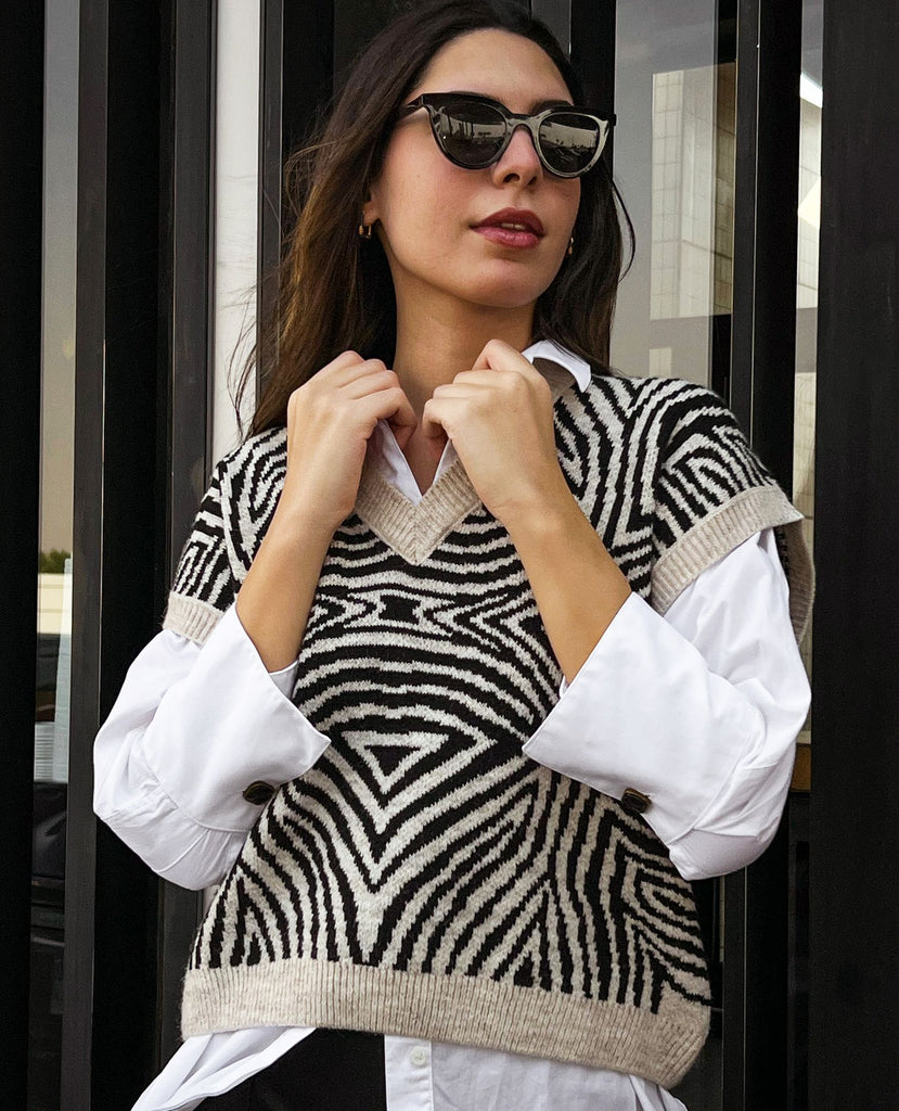 Zebra Illusion Knitted Vest Beige X Black
