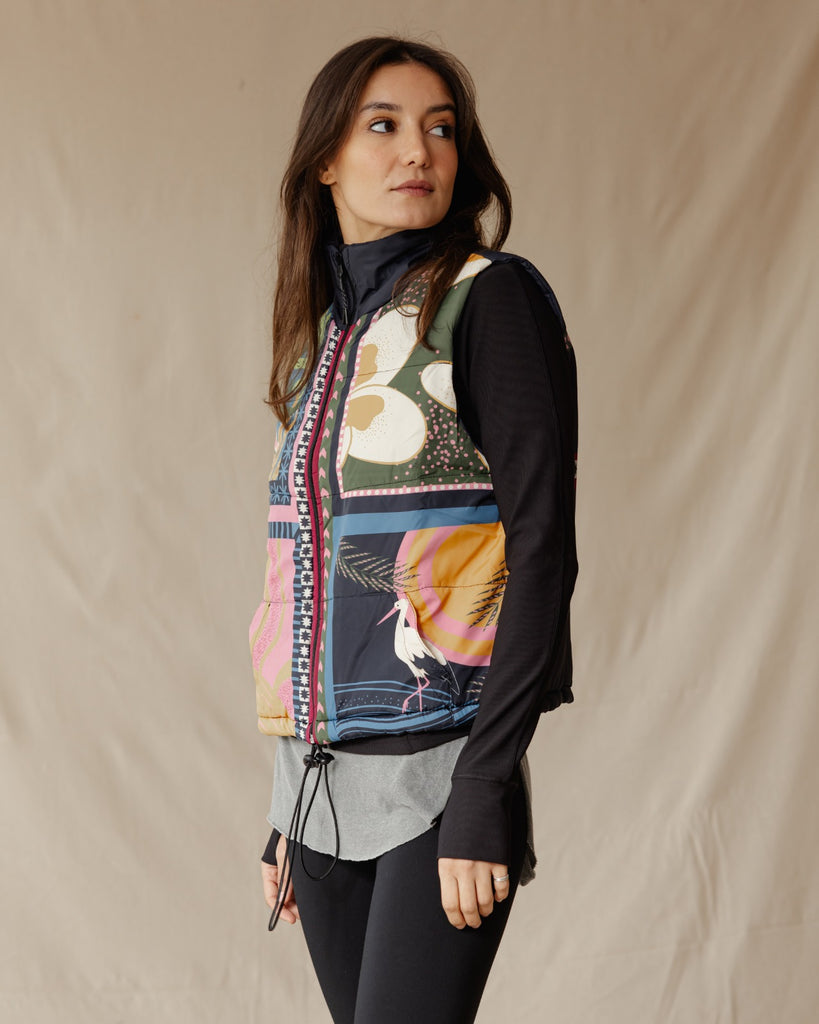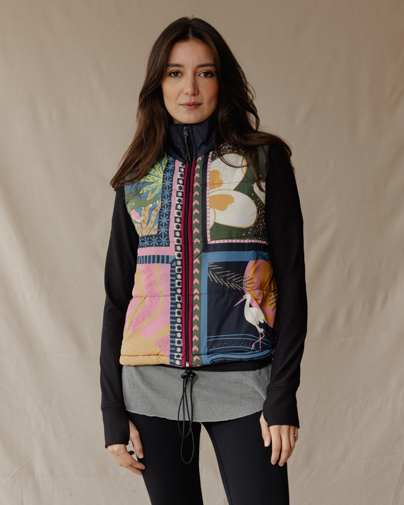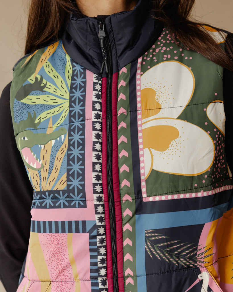 Featuring a unique print and waterproof material, this vest keeps you protected during unpredictable weather.