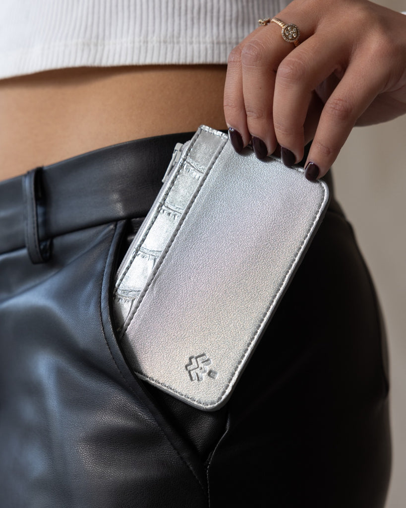 Ce porte-cartes, fabriqué à partir d'un mélange de cuir et de peau de serpent, est à la fois fonctionnel et élégant. Il peut contenir de 2 à 8 cartes avec trois poches extérieures pour un accès rapide, ce qui le rend parfait pour les essentiels du quotidien.