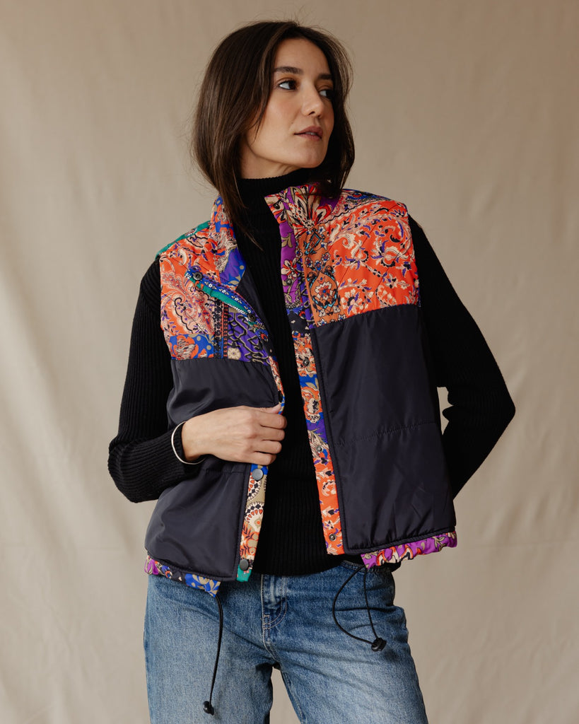Patchwork Festival Waterproof Vest Black