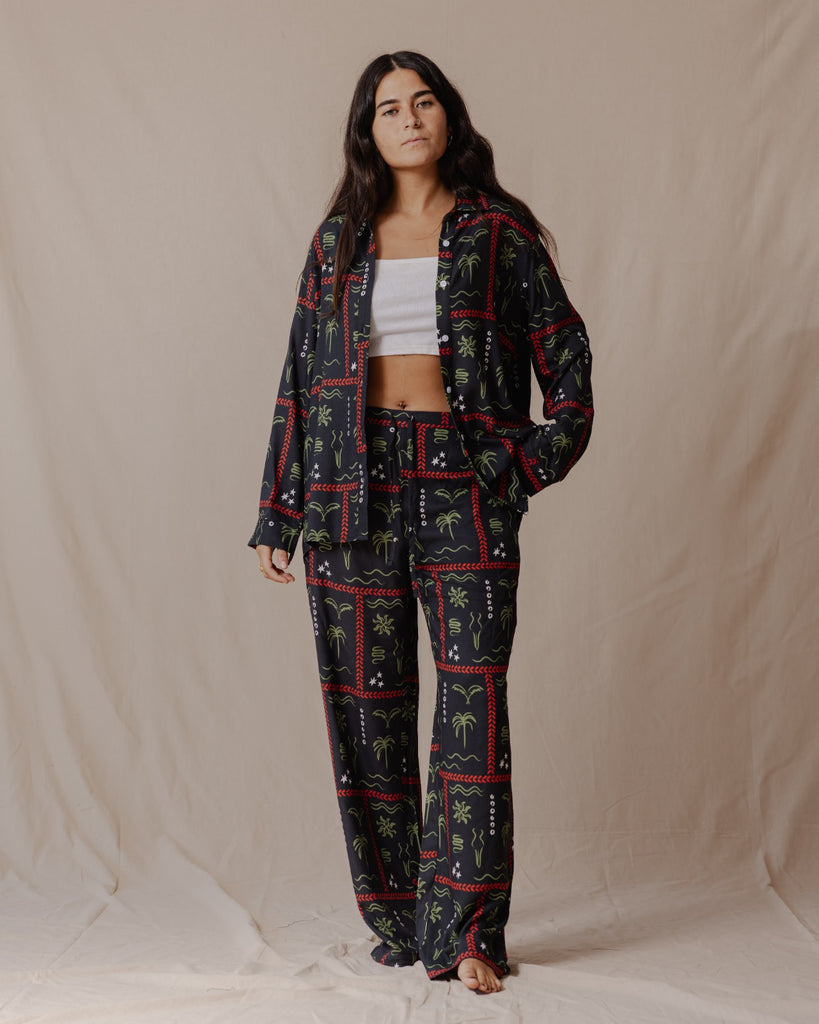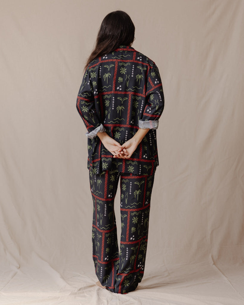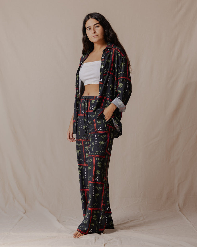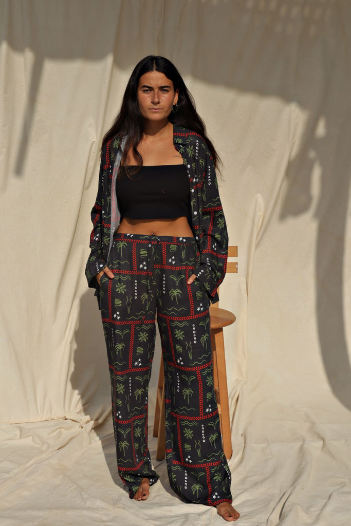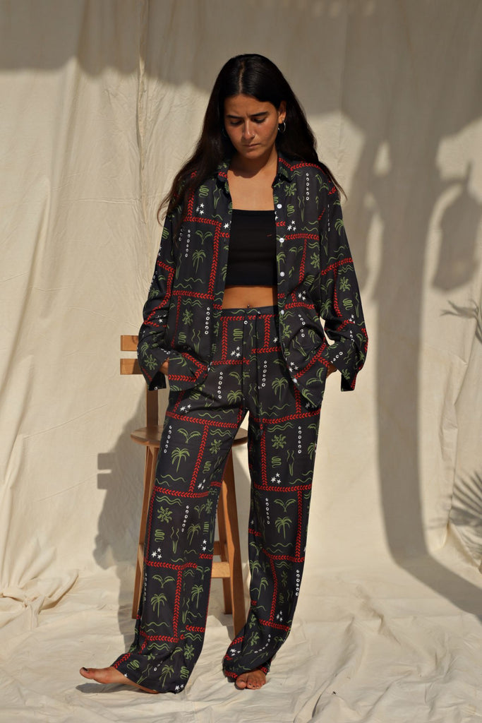 This printed pants and shirt set is a versatile choice for any occasion. Whether you're exploring the city or enjoying a casual walk, it offers the perfect balance of style and ease.