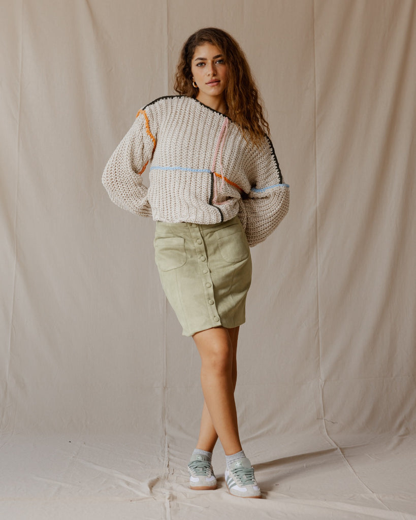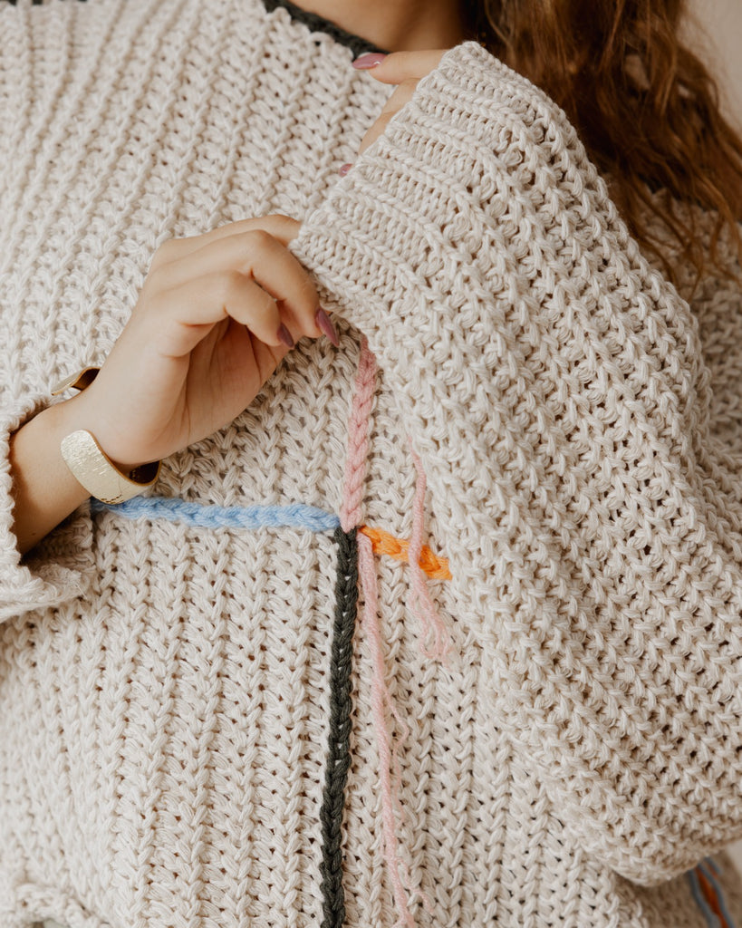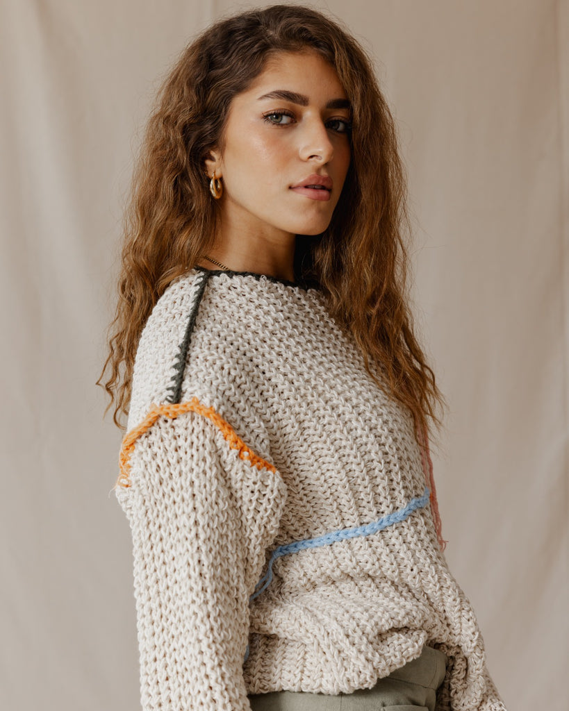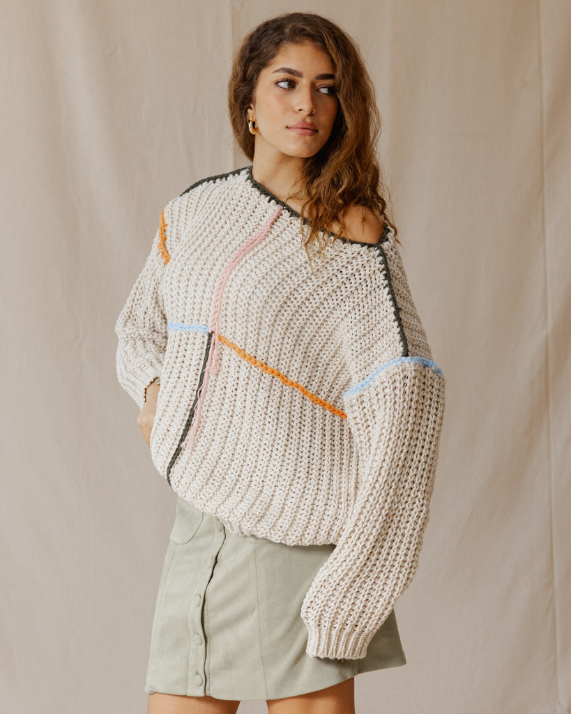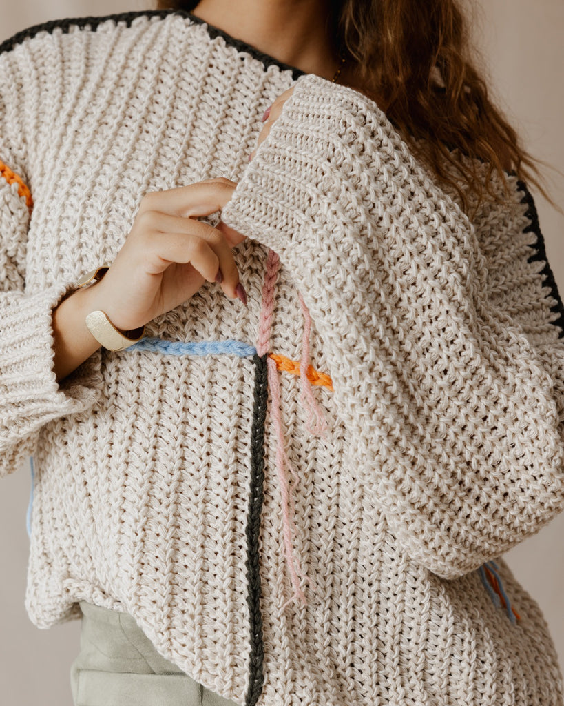 Elevate your wardrobe with our Tricot Pullover, designed with striking contrast threads. The delicate Tricot work is complemented by bold, contrasting colors, creating a unique and stylish piece.