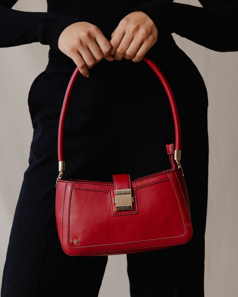 A timeless leather shoulder bag with a compact shape, ideal for essentials and a polished, versatile look.