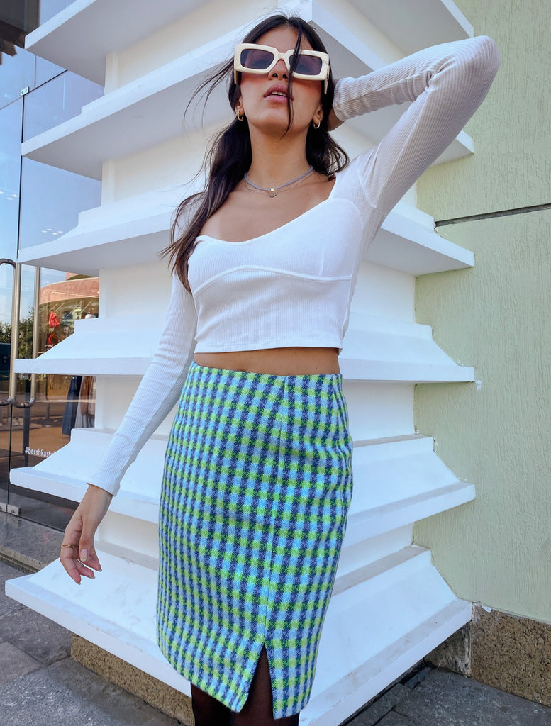 Our knee-length skirt is a wardrobe essential that combines versatility and style. The flattering length offers a classy and sophisticated look, suitable for both formal and casual occasions. Pair it with your favorite top and heels for a polished ensemble or dress it down with a blouse and flats for a casual yet trendy outfit.
