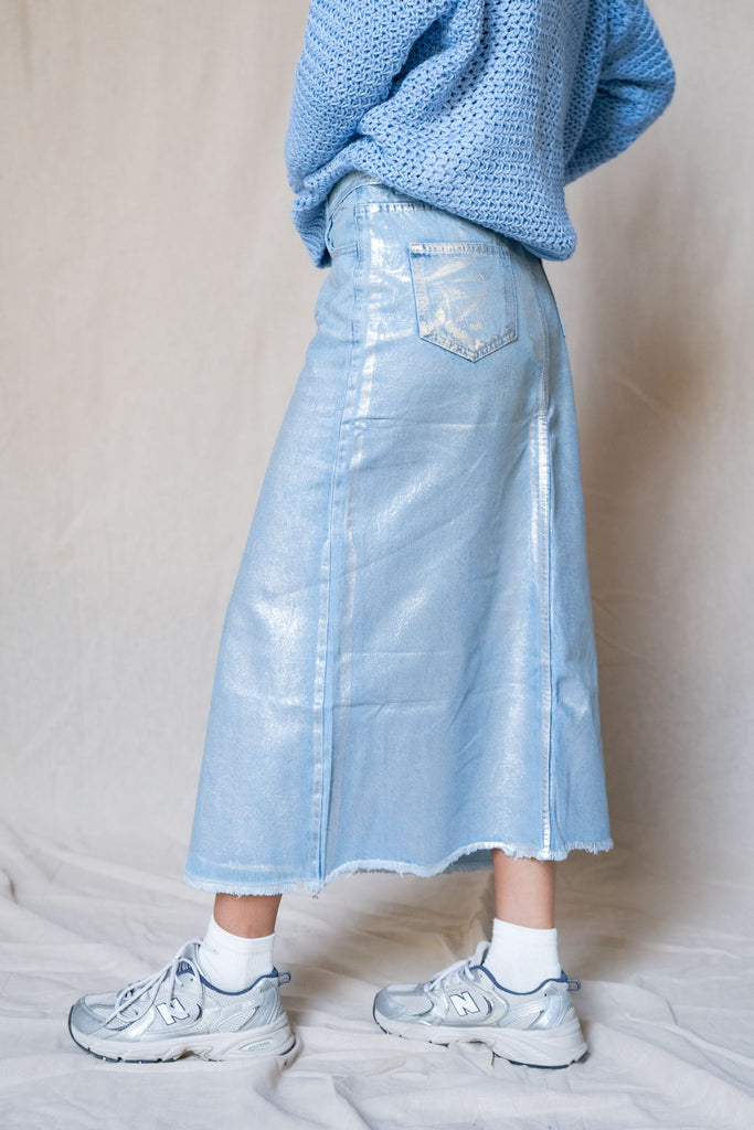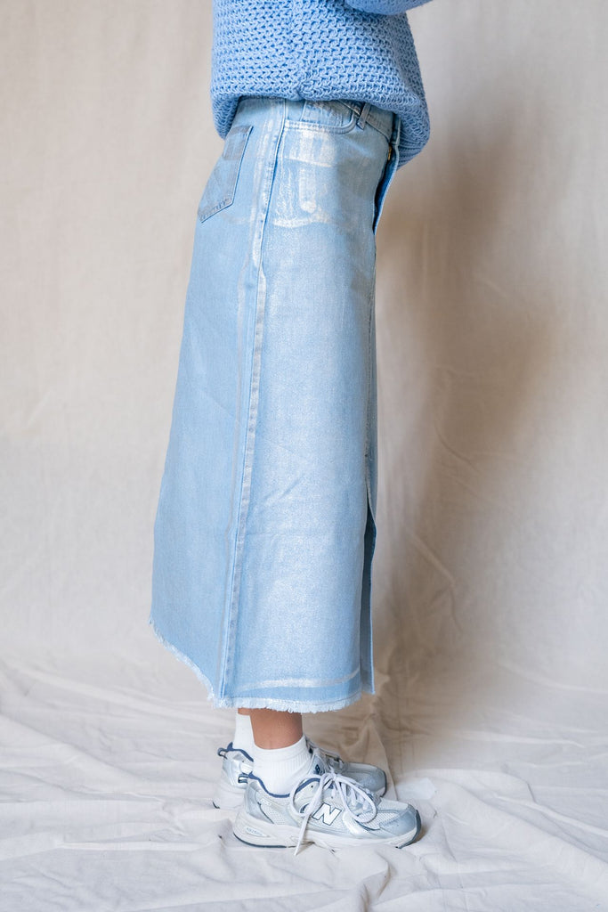 Metallic Denim Skirt With A Slit