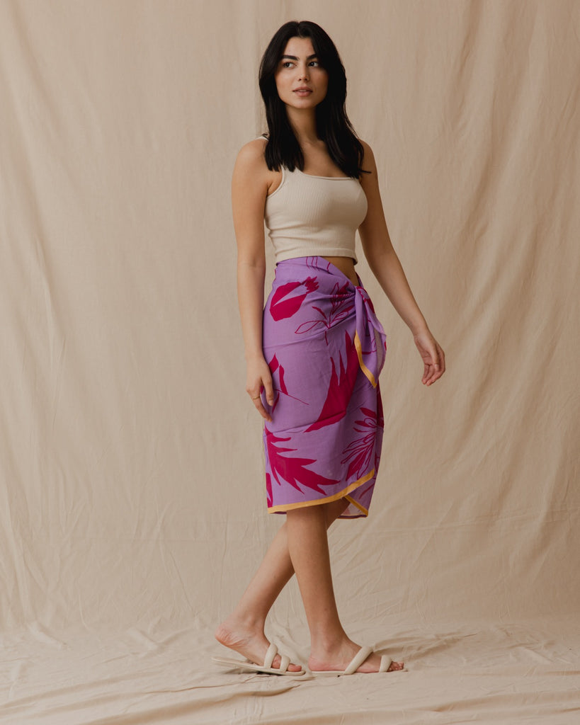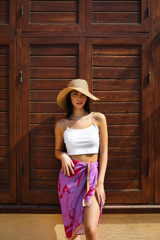 This stunning voile wrap is a must-have for any beach babe. With its versatile design and endless styling options, it's the perfect accessory to elevate your beach look. Plus, its breezy fabric and chic print will have you feeling like a total goddess under the sun!
