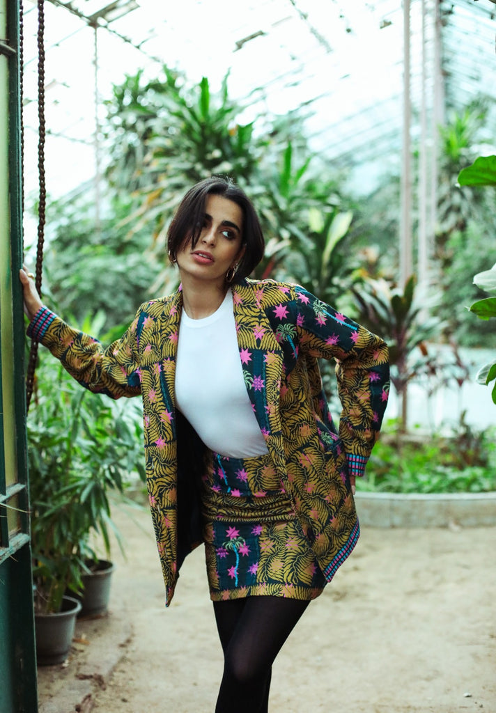 Tiny skirt, big attitude! This print explosion dances on your legs, ready to conquer the world solo or team up for an epic style statement.
